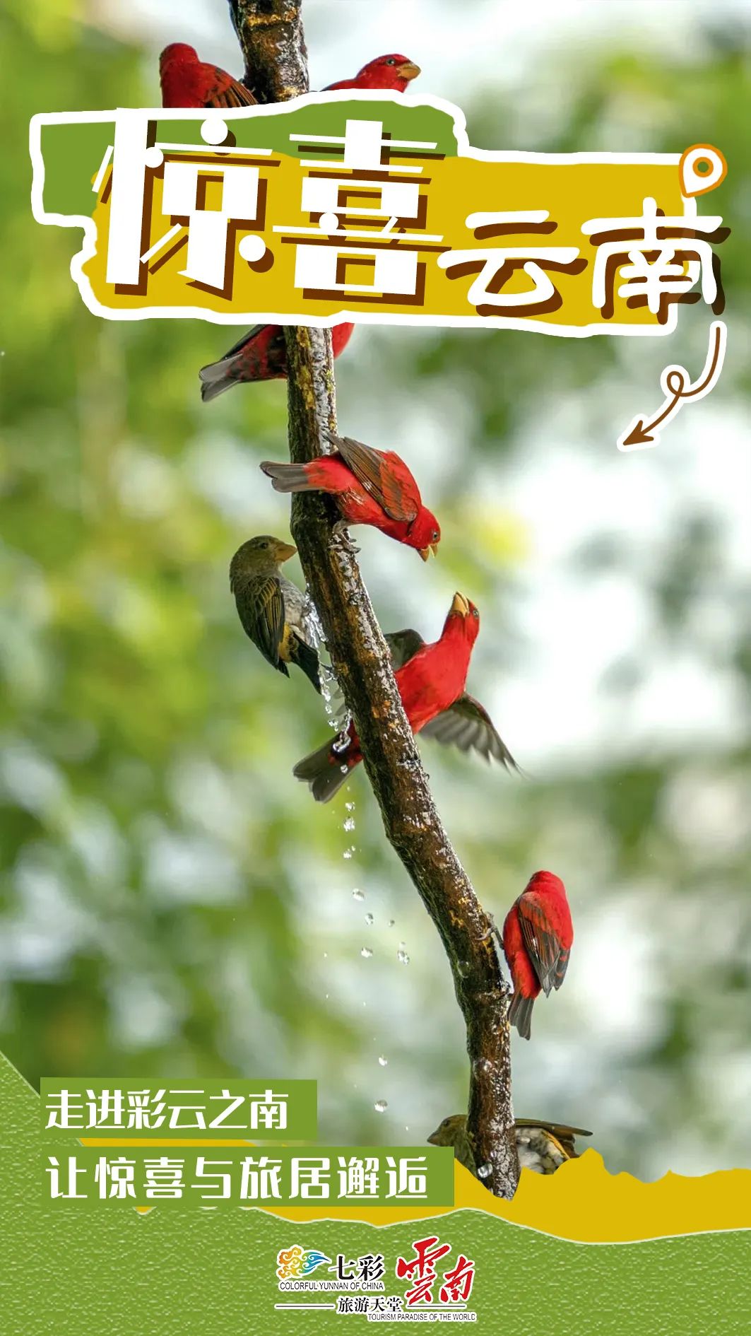 一身“热辣滚烫”,极为稀有的血雀是众多爱鸟人士的宠儿,在百花岭却能看到它们成群结队。
