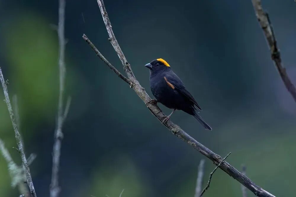 头顶金枕、全身乌黑的金枕黑雀,在高黎贡姜家寨鸟类观测点,时常有它的身影……