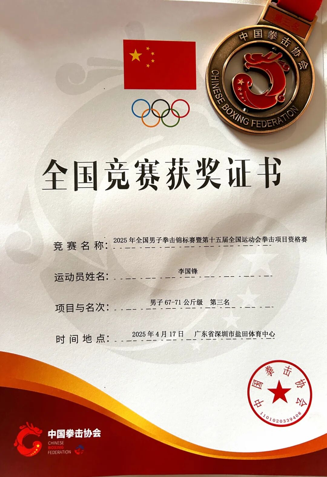 近日,由国家体育总局主办,在广东省深圳市盐田体育中心闭幕的“ 2025年全国男子拳击锦标赛暨第十五届全国运动会拳击项目资格赛”中,云南楚雄技师学院 云南现代职业技术学院输送代表云南出战的拳手李国锋斩获男子67~71公斤级斩获铜牌,顺利挺进全运会拳击决赛。