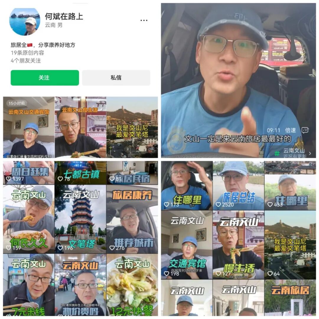 何斌的旅居经历,不仅是他个人的体验分享,更是一场城市与旅居者的“双向奔赴”。他通过网络平台征集网友建议,将西华公园、文笔塔、七都古镇等景点纳入攻略,并替网友们品尝文山的特色美食,走进菜场探寻物价,这些内容不仅为后来的旅居者们提供了参考,更展现了“旅居者共创”的潜力。