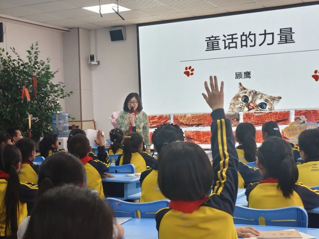 4月17日至18日,校园迎来两场文学盛宴。4月17日下午,童话作家顾鹰带着她的奇思妙想翩然而至。作为中国作家协会会员、常熟市作协主席,她笔下的童话《我变成了一棵树》曾走进小学语文课堂。在“童话的力量/跟着童话去旅行”讲座中,顾鹰老师以灵动的语言,将童话创作的奇妙世界娓娓道来,带着2 - 3年级的孩子们乘着想象的翅膀,在童话王国中遨游,点燃了孩子们对文学创作的渴望。