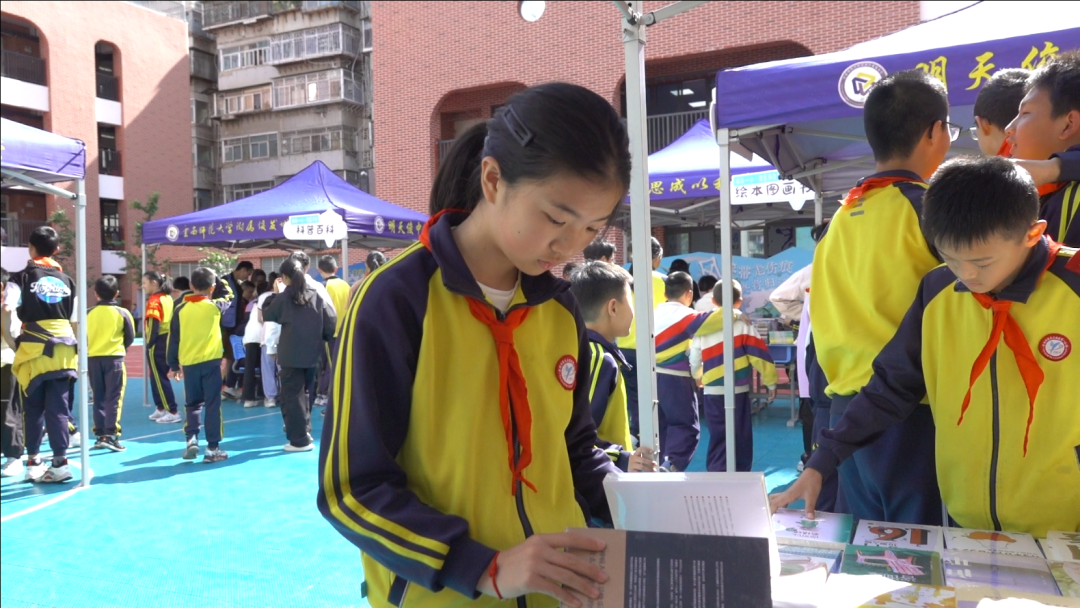 4月18日,备受期待的“红领巾书市”如约而至,璞玉书店带着数千册涵盖文学名著、科普读物、绘本故事、历史人文等多个品类的优质图书走进校园。书市现场划分成不同主题区域,“经典名著区”陈列着古今中外的传世佳作,翻开书页便可与大师对话;“趣味科普区”用生动的图文揭秘宇宙奥秘与科学奇迹;“绘本童话区”以精美插画与童趣文字,为低段学生编织梦幻世界。