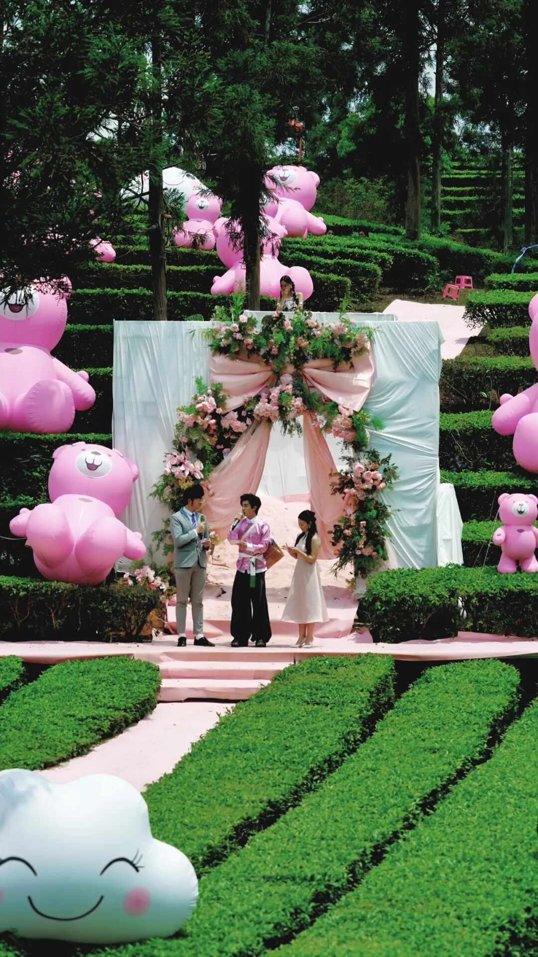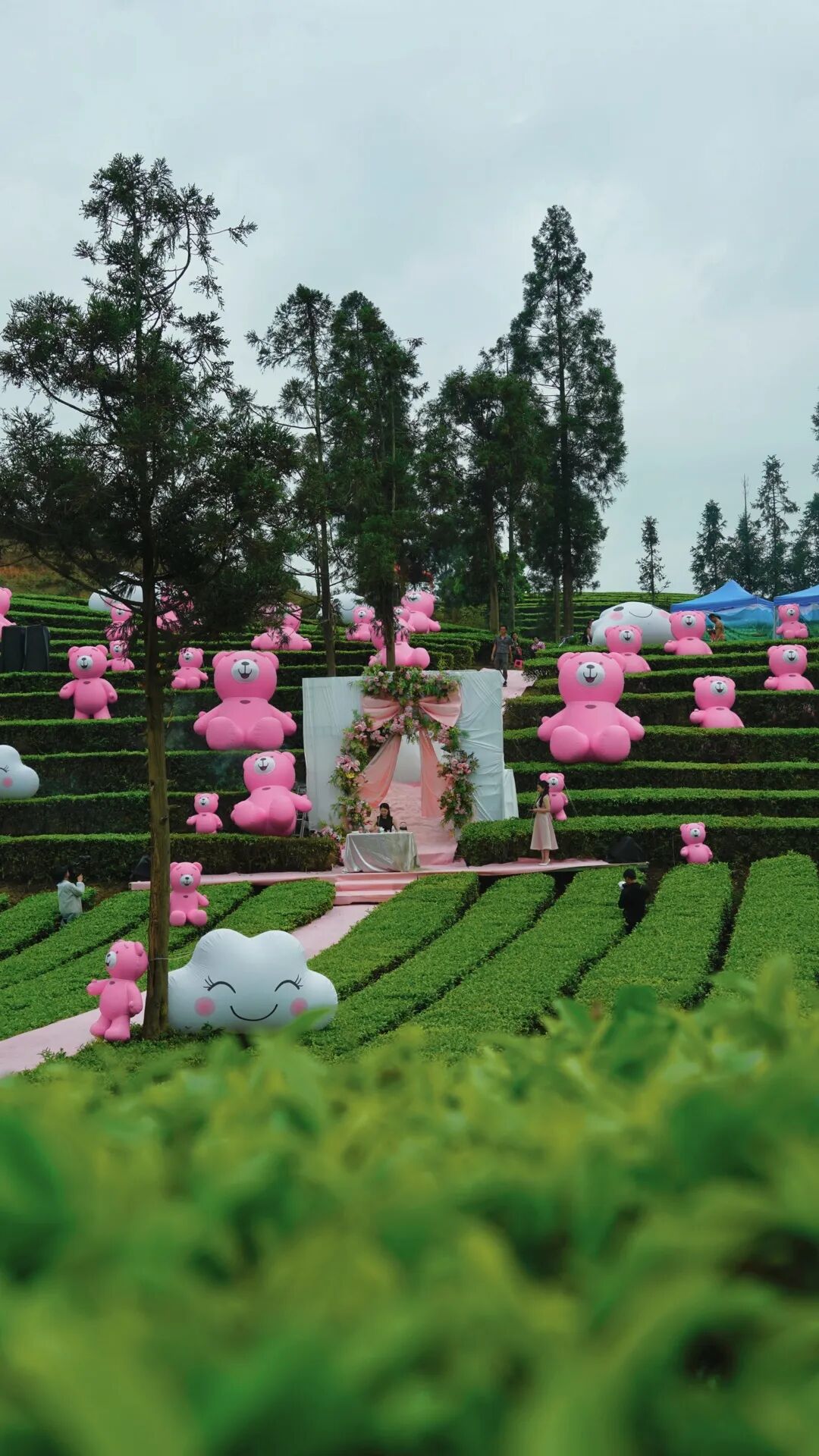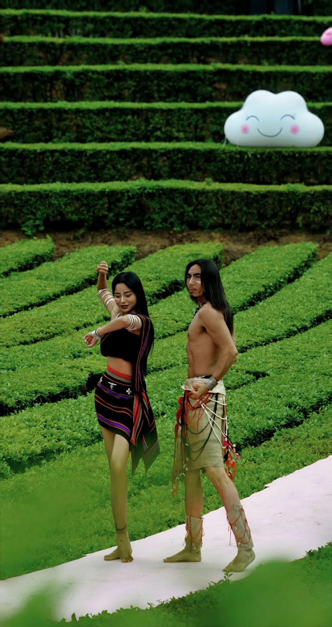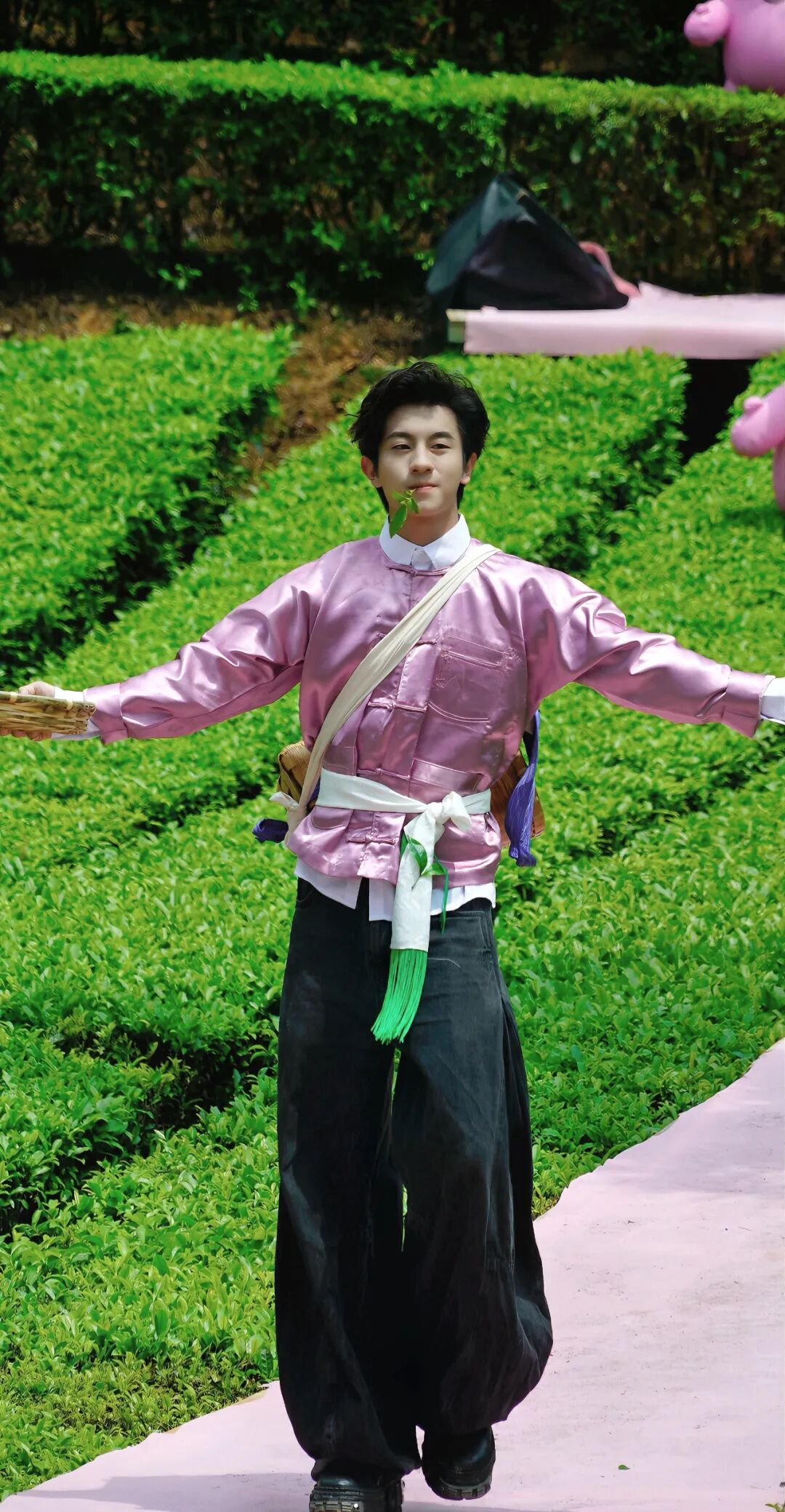 11时30分,茶园T台迎来高光时刻——“湄澜之畔·茶香霓裳”民族服饰秀惊艳登场。新锐设计师以茶叶为手环、茶染为裳,将临沧多民族图腾化为流动的时尚语言。模特手持中山竹编包,踏着茶园粉色地毯的天然T台款款而行,衣袂翻飞间,茶文化与民族美学浑然一体。网红模特鸟木、依久、黑美人、刘少以一袭“茶香民族风”造型引爆全场,记者和游客们纷纷举起手机记录这一“茶山时尚时刻”。
