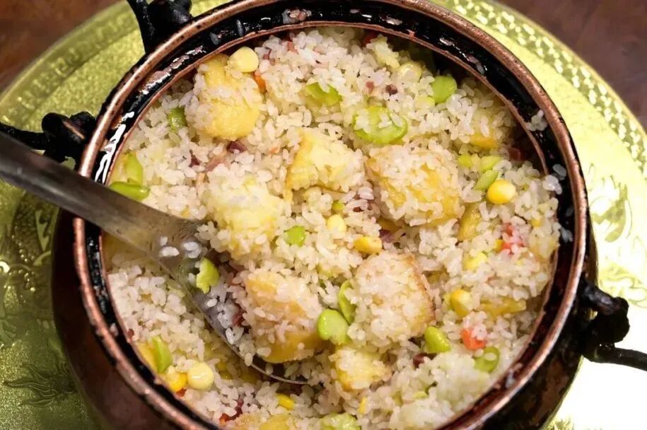 澄江人喜欢用传统的铜锅焖煮洋芋饭,焦香酥脆的锅巴裹着软糯的洋芋,再佐以农家腌菜、卤腐或腊肉,质朴中透出满满的烟火气,是难得的人间美味。