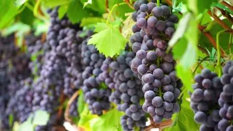 葡萄园内,一串串水晶般的“东方黑珍珠”夏黑葡萄在阳光下闪耀,皮薄肉厚,香甜可口。