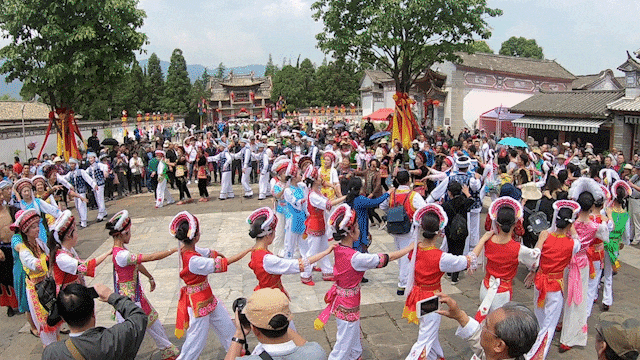 云南民族村白族“绕三灵”、千人泼水送祝福