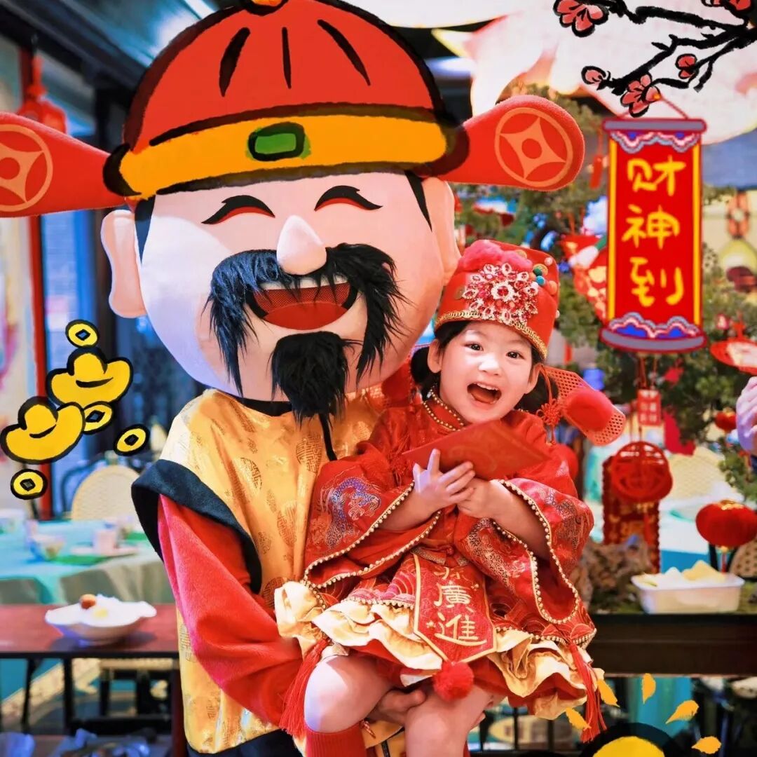 活动期间,“财爷”每天10:00-16:00在园区发放招财寻宝贴士,集齐不同数量的元宝贴画有不同的奖品。