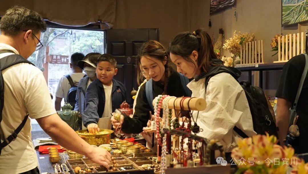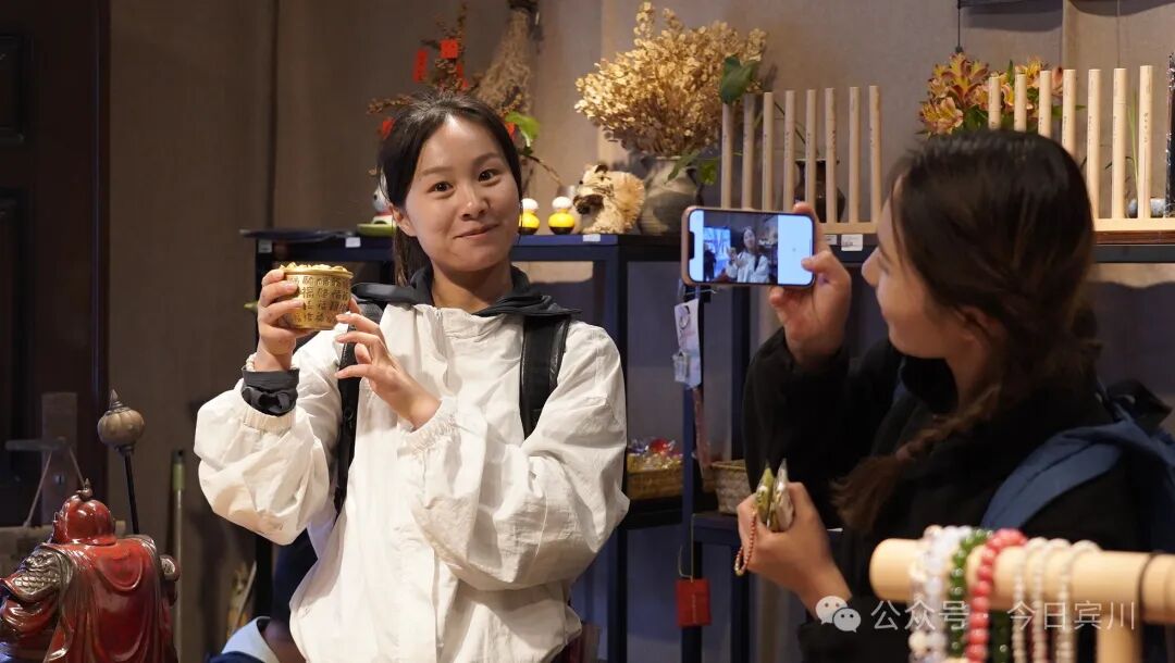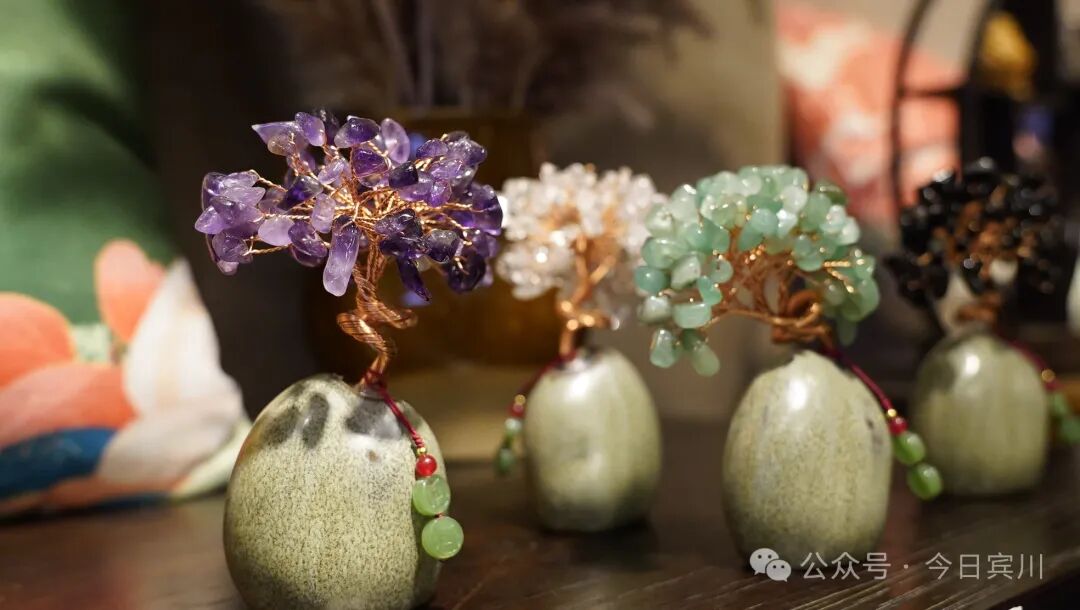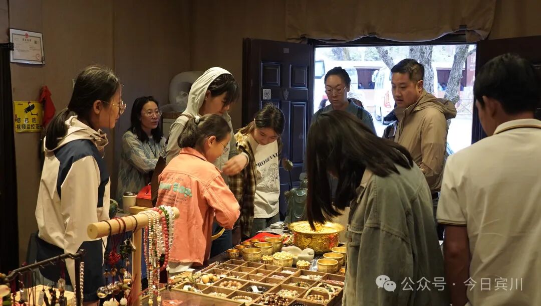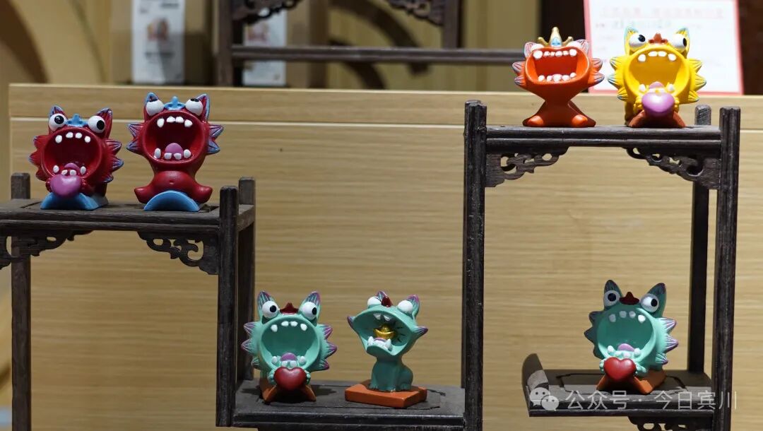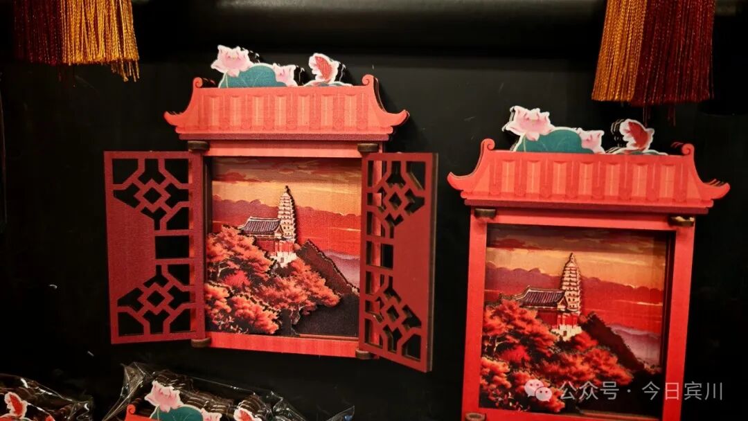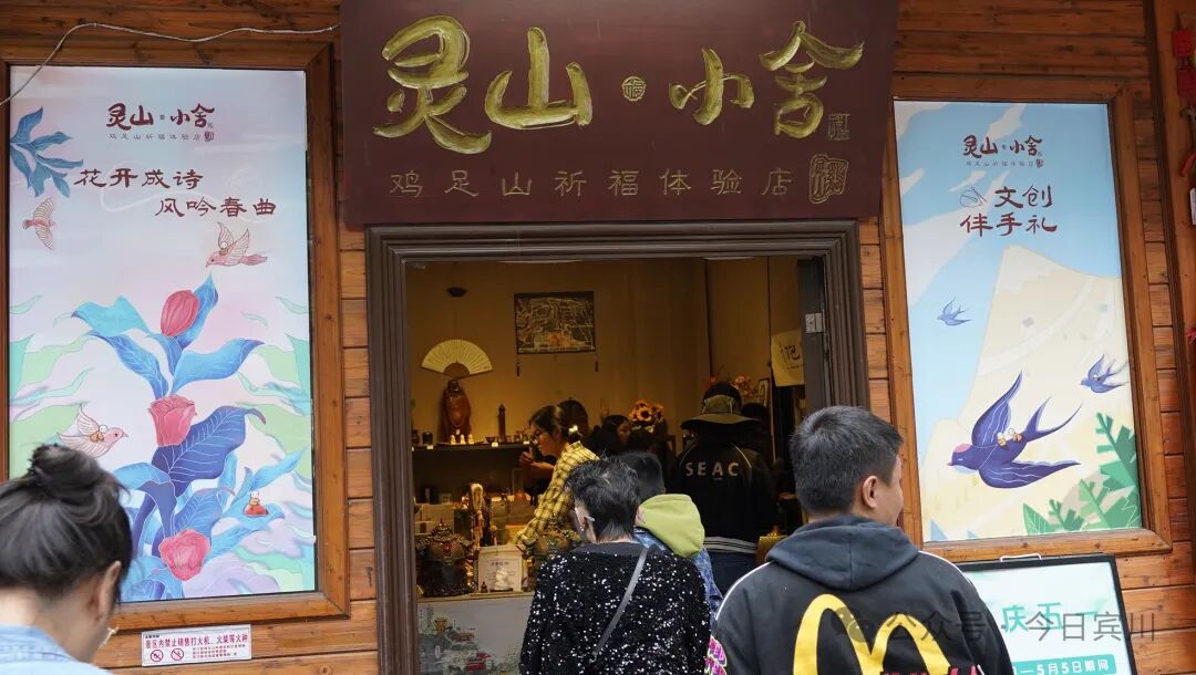 隔壁“灵山小舍”更是直接放大招,更像一个文化盲盒基地!店主杨晓燕揭秘:“我们家每件产品都有‘小心机’!灵感全来自鸡足山的古建筑、对联,连石头缝里的文化都被我们做成文创了!”