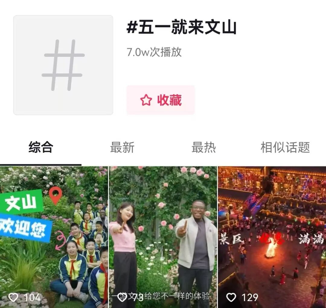 5月1日至5月4日,文山州文化和旅游局邀请网络达人和文旅推荐官实地打卡宣传,营造“有一种叫云南的生活·旅居文山”“五一就来文山”话题热度,话题播放量达6705.3万人次。极大提升了景区的知名度,有效拉动了文旅消费热潮。“文山文旅”新媒体矩阵发布信息近百条,发布安全风险须知、文明旅游提示、景区优惠活动等信息。