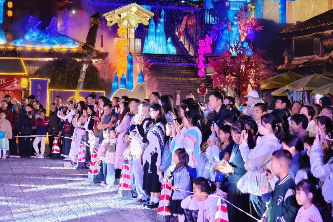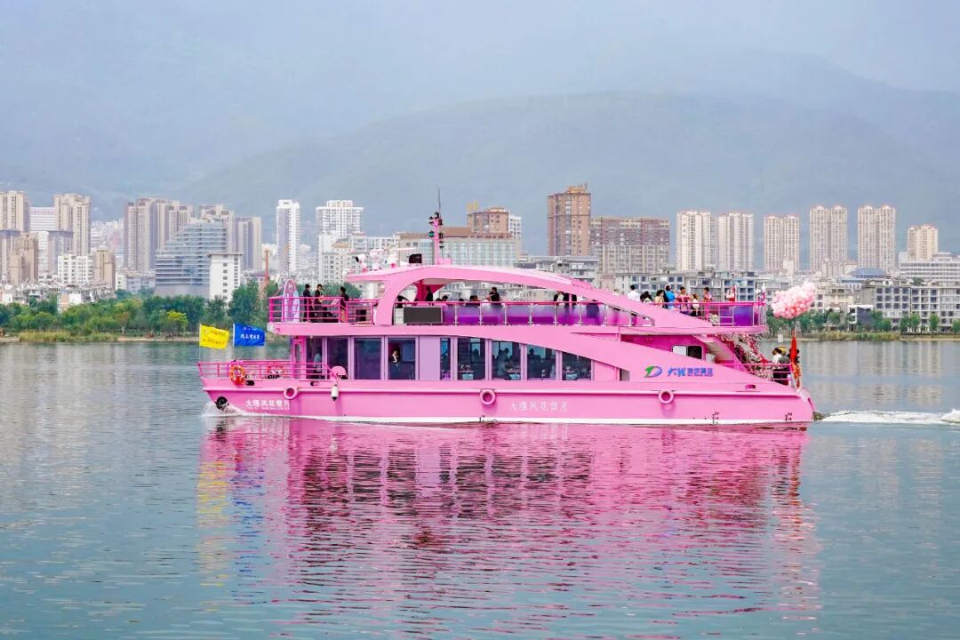 “风花雪月号”新能源粉色主题游船,让游客沉浸式感受苍山洱海的浪漫;“七彩云灯·侠影江湖”大理仙侠不夜城,为游客开启光影交织的奇幻旅程;洱海生态廊道花车巡游,吸引游客纷纷打卡留念。