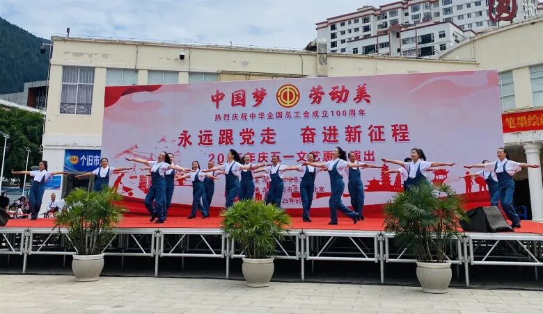 为热烈庆祝中华全国总工会成立100周年,展现劳动之美,近日,由个旧市总工会主办,个旧市工人文化宫承办的“中国梦·劳动美永远跟党走奋进新征程”2025年庆“五一”文艺惠民演出在个旧市工人文化宫文化广场精彩上演。