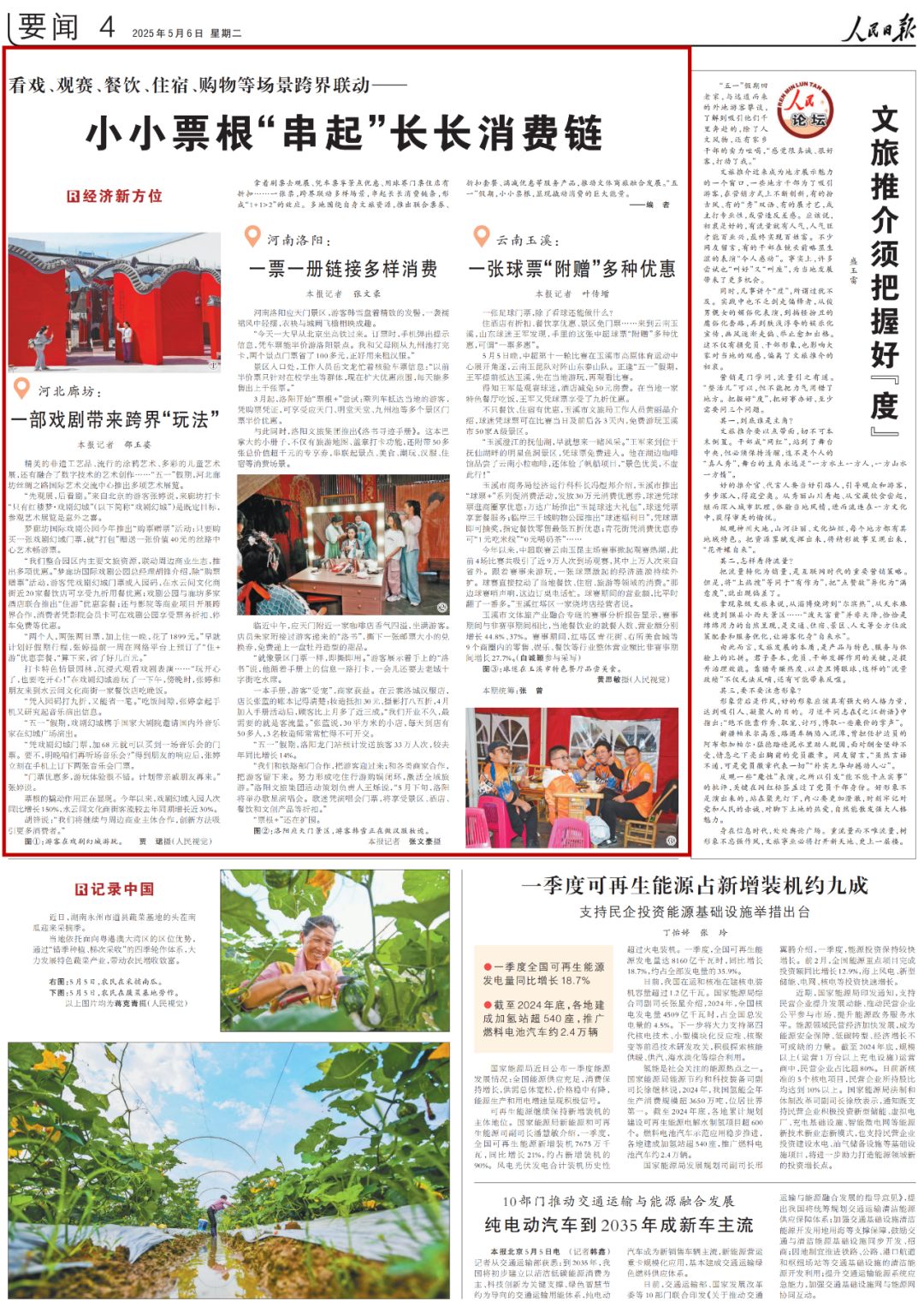 5月6日,《人民日报》要闻版刊文《看戏、观赛、餐饮、住宿、购物等场景跨界联动——小小票根“串起”长长消费链》,报道多地围绕自身文旅资源,推出联合票券、折扣套餐、满减优惠等服务产品,推动文体商旅融合发展。“五一”假期,小小票根,显现撬动消费的巨大能量。其中,玉溪以一张球票“附赠”多种优惠的“宠粉”举措获得点赞。