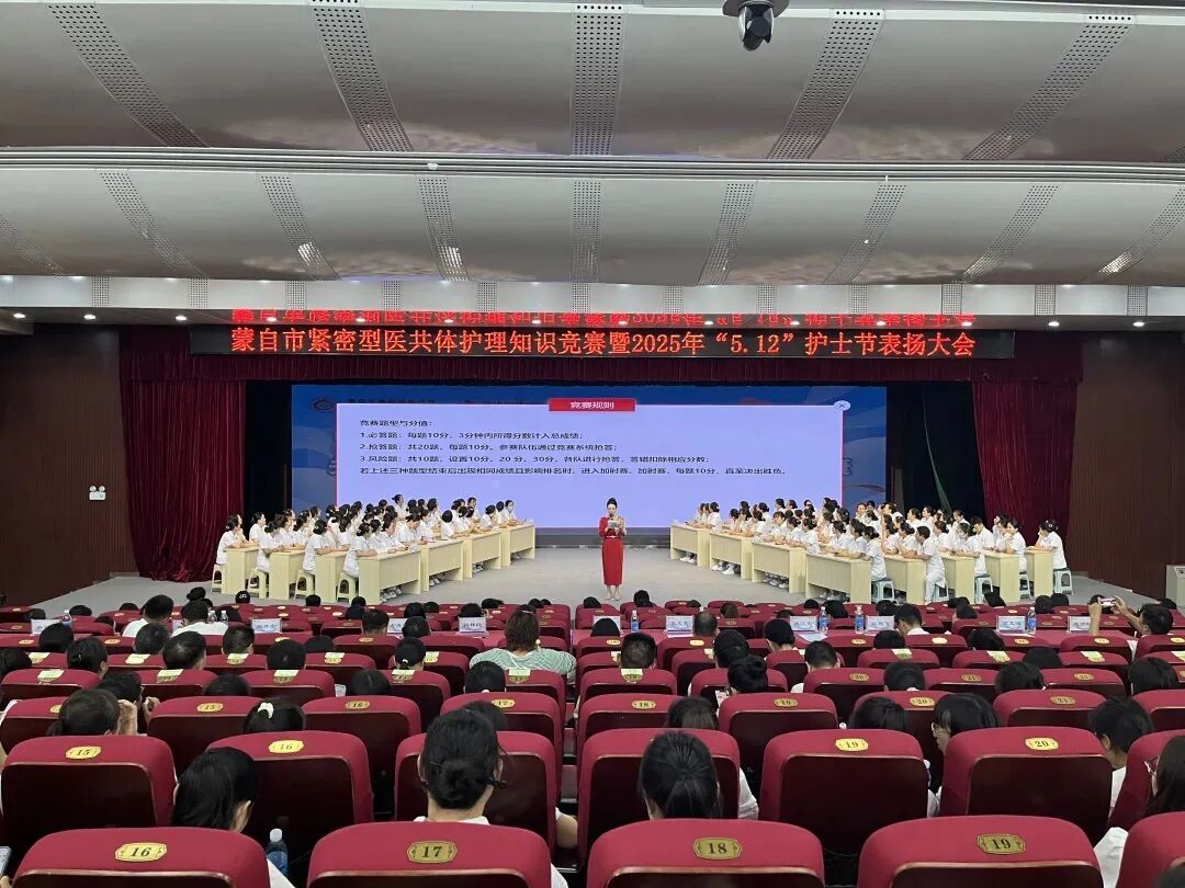 活动期间,蒙自市卫健系统工会联合会、紧密型医共体总院及蒙自市人民医院工会联合举办“医路携手·同练技能,绘就医共体新蓝图 关爱护士队伍 守护人民健康”技能竞赛暨2025年“5·12”护士节表扬大会。大会表彰了2025年度优秀护士长、优秀护士、护龄30年以上护士及技能竞赛获奖团体和个人。
