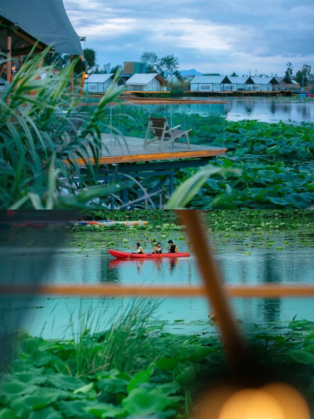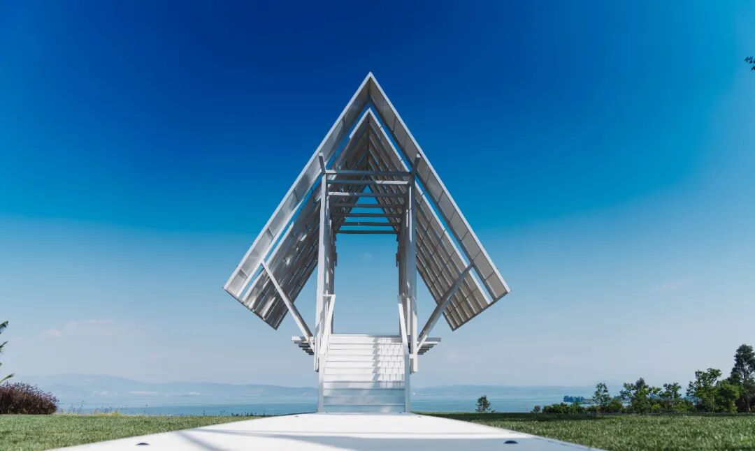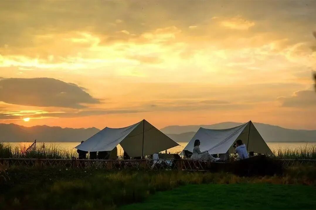 在小渔村山顶星空营地,绿色的草地上,纯白的“小礼堂”映衬着滇池,像是童话里的城堡。在这里举办一场户外婚礼,在滇池的见证下许下誓言,当夕阳染红湖面,更是浪漫至极。