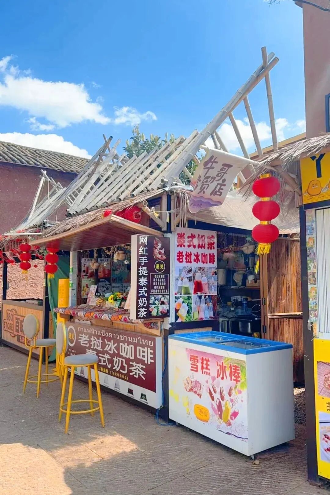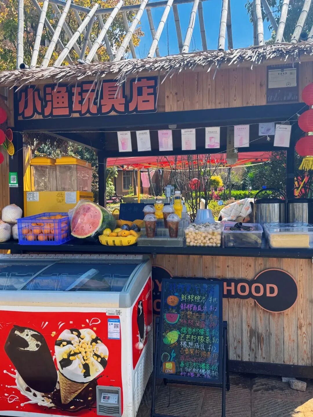 除了大食堂、水上餐厅、营地烧烤火锅等食客熟知的吃饭去处,渔市巷里还藏着很多宝藏小铺,本地阿婆开的炸洋芋摊,外酥里糯;凉米线酸辣开胃,配上一碗木瓜水,简直就是解暑神器,还有现炸的虾饼和鱼饼,金黄酥脆,咬开也许能看到完整的虾仁。