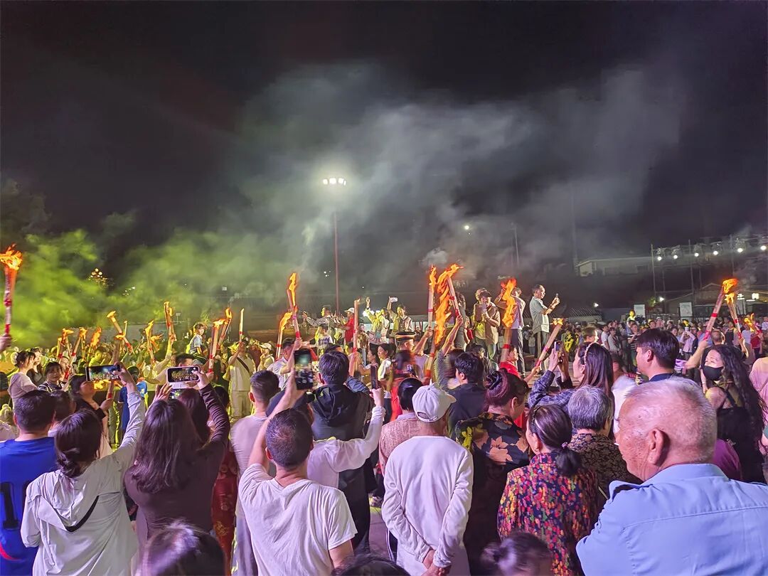 文艺演出结束后,“旅居楚雄”之火把狂欢沉浸体验将现场氛围推向高潮。楚雄州文化和旅游局副局长李保卫欣喜地说:“今天的活动热闹非凡,800多名来自全国各地的游客汇聚于此,充分感受到了火城的热情。活动的成功举办,不仅凸显了楚雄的旅居热度,更为即将到来的火把节预热,展现了火元素与花元素交织的独特魅力。”