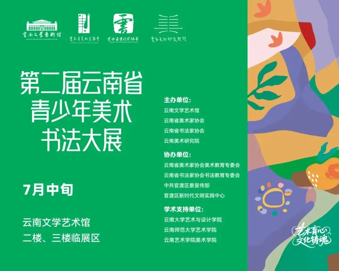 为深入学习贯彻习近平文化思想,坚定文化自信,牢牢把握“艺术美育从娃娃抓起”的美育理念,引导青少年创作反映时代精神、体现社会主义核心价值观的文艺作品,为青少年提供多元化、高质量的艺术体验,特举办第二届云南省青少年美术书法大展,现面向全省广泛征稿,相关事宜通知如下: