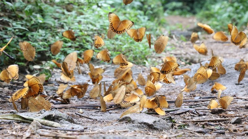 每年夏天,红河州金平县的中国·红河蝴蝶谷内,上万只蝴蝶在这里破茧,山林间、溪流旁、屋檐下,精灵们无处不在,它们与人同行、与林同行、与水同行,在蝴蝶爆发的季节形成“蝴蝶聚会”,人们可以像翻书那样,一只只拨开,寻找最美丽的那只。