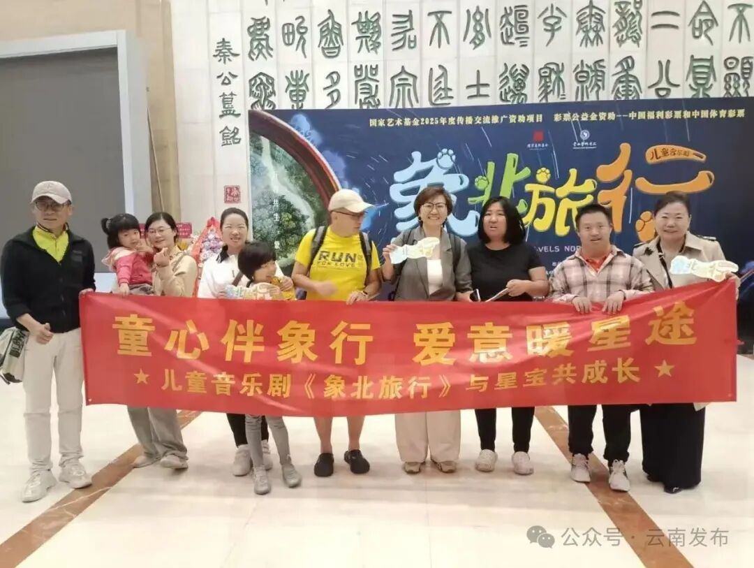 该剧于2022年最先获得云南省文艺精品创作专项资金扶持,继获2023年度国家艺术基金大型舞台剧和作品创作资助项目后,再度荣获2024年度云南艺术基金和2025年度国家艺术基金支持,是云南省重点打造的儿童音乐剧。与往常不同的是,22日的演出观众席上坐着一群特殊的小观众——来自北京的孤独症儿童(又称“星宝”)及其家庭。这场经过精心调整的公益专场,旨在用艺术的力量为“星星的孩子”点亮一片包容与理解的天空。