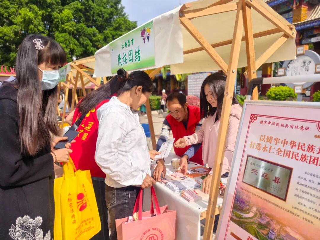 线上线下齐发力,长效机制固根基。本次宣传周创新实施“六个一”民族团结进步宣传教育深化工程:组织一场主题展览、开展一次基层宣讲、举办一场民族文艺汇演、推出一组云端课堂、发起一次社科征文、建立一支常态化志愿队伍。通过“线上直播+线下体验”“集中活动+长效服务”相结合的模式,推动党的民族理论政策进机关、进企业、进社区、进校园、进景区、进园区等场所,用好听、好懂的形式推动党的民族理论、政策飞入寻常百姓家。活动特别设立“民族团结进步”专题展区,以图文展板、影像资料展现永仁各族群众交往交流交融的生动实践。此次活动通过“文化浸润+实践养成”的创新模式,将铸牢中华民族共同体意识贯穿社科普及全过程,展现了永仁各族群众手足相亲、守望相助的精神风貌,为谱写好中国式现代化永仁篇章作出新的更大贡献。