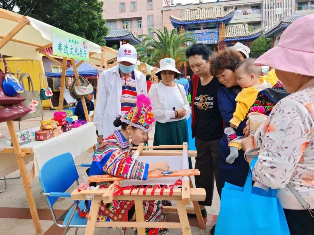 文旅融合展风采,非遗传承促团结。活动在《有一种叫云南的生活·阳光永仁,自在宜居》主题宣讲中拉开帷幕,生动诠释了永仁独特的民族文化与生态魅力。社科集市成为群众参与的热点区域:彝族刺绣、苴却砚雕刻等非遗技艺传承人现场展演,让传统文化焕发现代活力;农特产品展销区汇集永仁甘栗仁、手工麦芽糖等特色物产,展现乡村振兴成果;文旅企业推出的“民族团结主题游线”将彝族赛装节、直苴古村落等文化地标串联,吸引众多游客咨询。群众通过参与知识问答、集章打卡、分享朋友圈等趣味互动,在收获彝绣香囊、民族文创等礼品的同时,更深入理解了“中华民族一家亲”的深刻内涵。