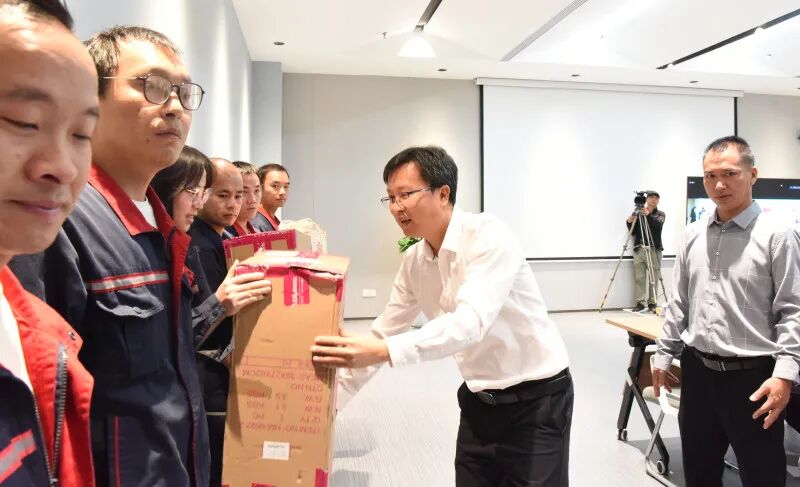 仪式在一段展现百年工运历程的精彩视频中拉开帷幕,与会人员一同观看了由中国邮政上海市徐汇区分公司(以下简称:中国邮政徐汇分公司)精心拍摄的微心愿物资送达云南省红河州工会的视频。视频中,爱心物资从黄浦江畔启程,一路跨越山川河流,最终抵达红河之滨,生动呈现了这份跨越千里的爱心传递过程,让现场每一个人都深刻感受到了沪滇两地之间深厚的情谊。随后,红河州总工会代表徐汇区总工会,向参加活动的30名困难职工代表捐赠了生活用品、学习用品等心愿物资。