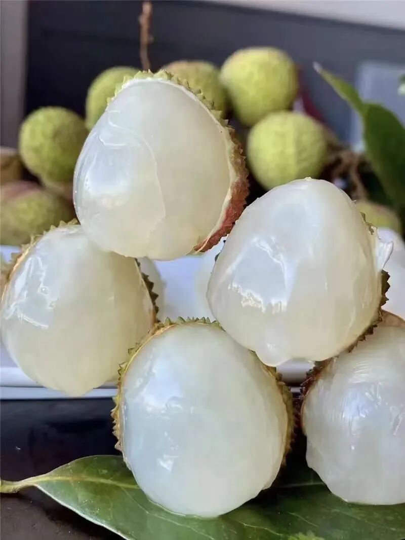剥开荔枝红绿相间的外壳,可以看到洁白细腻的果肉,荔枝的清香萦绕鼻尖,咬一口,就有无尽的清甜从舌尖蔓延到心头,让人忍不住吃下一颗再来一颗!