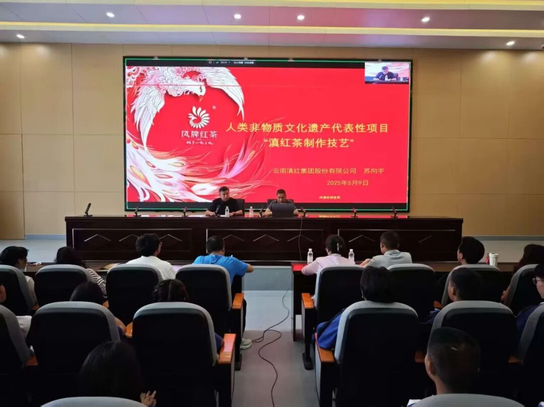 临沧市农业学校报告厅内,茶香弥漫。年过六旬的苏向宇老师站在讲台上,声音沉稳有力:“人类非物质文化遗产代表作名录‘滇红茶制作技艺’六大核心技术体系,环环相扣,关关相连……”2025年5月9日,这位省级非遗传承人面对两百余名现场师生与千余名线上学子,将滇红茶的技艺密码娓娓道来。