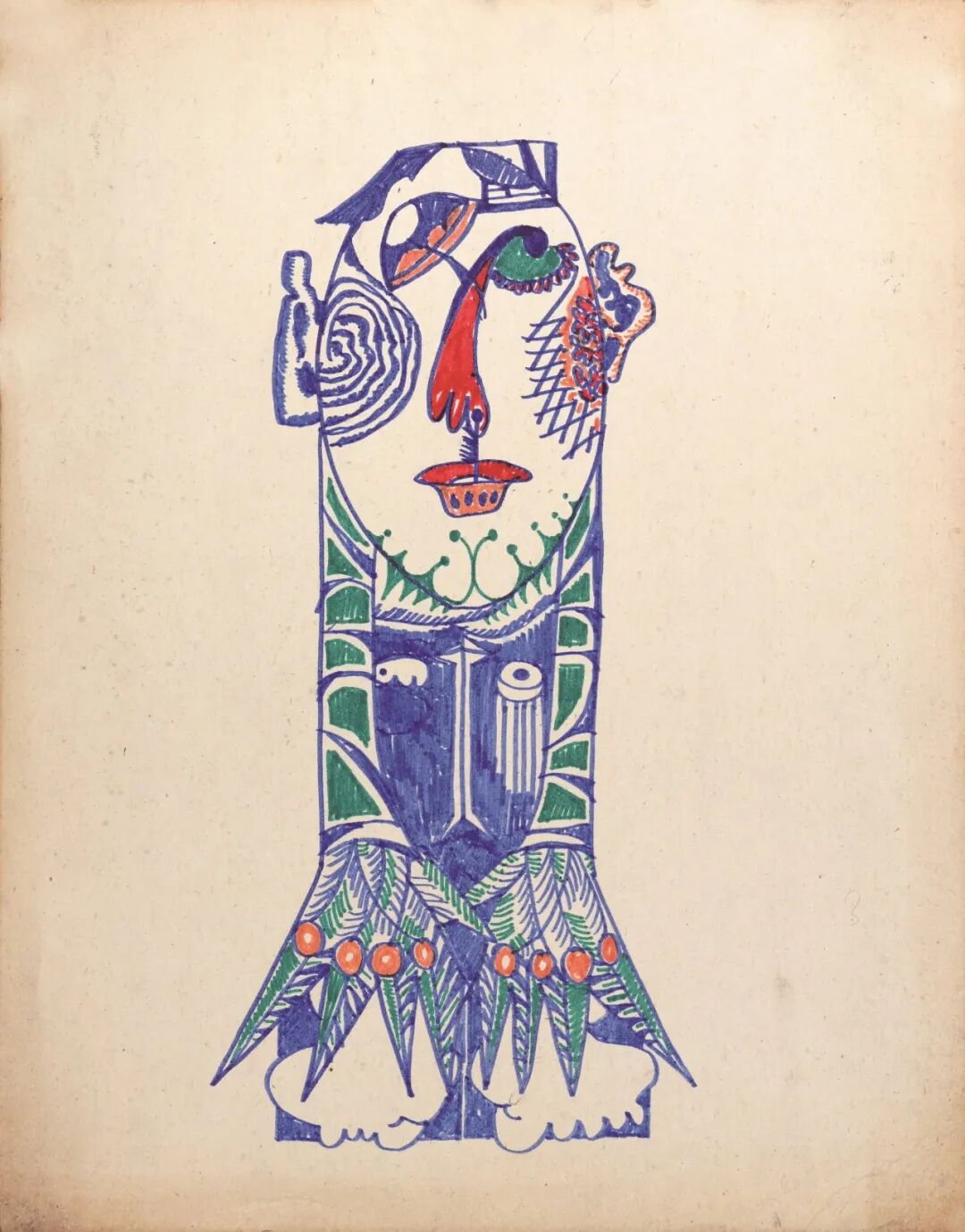 《即兴》12.8cm×22cm 纸本彩笔线描 1982