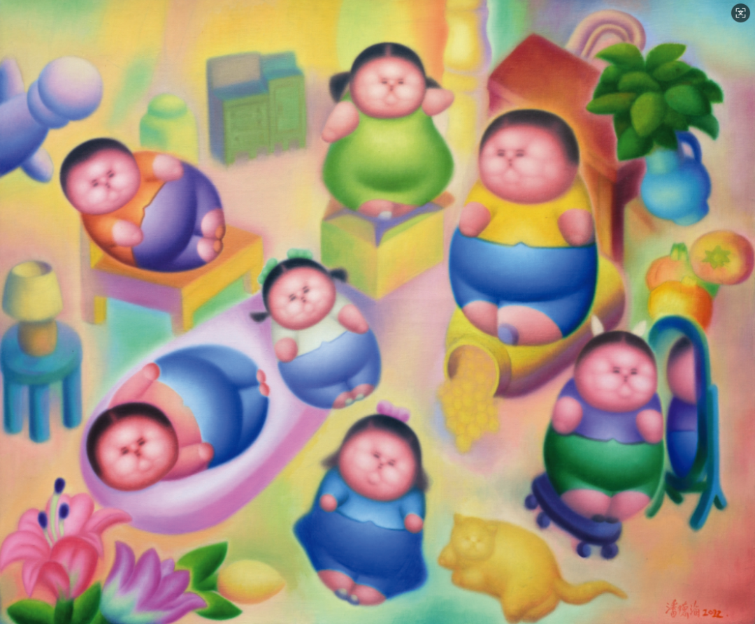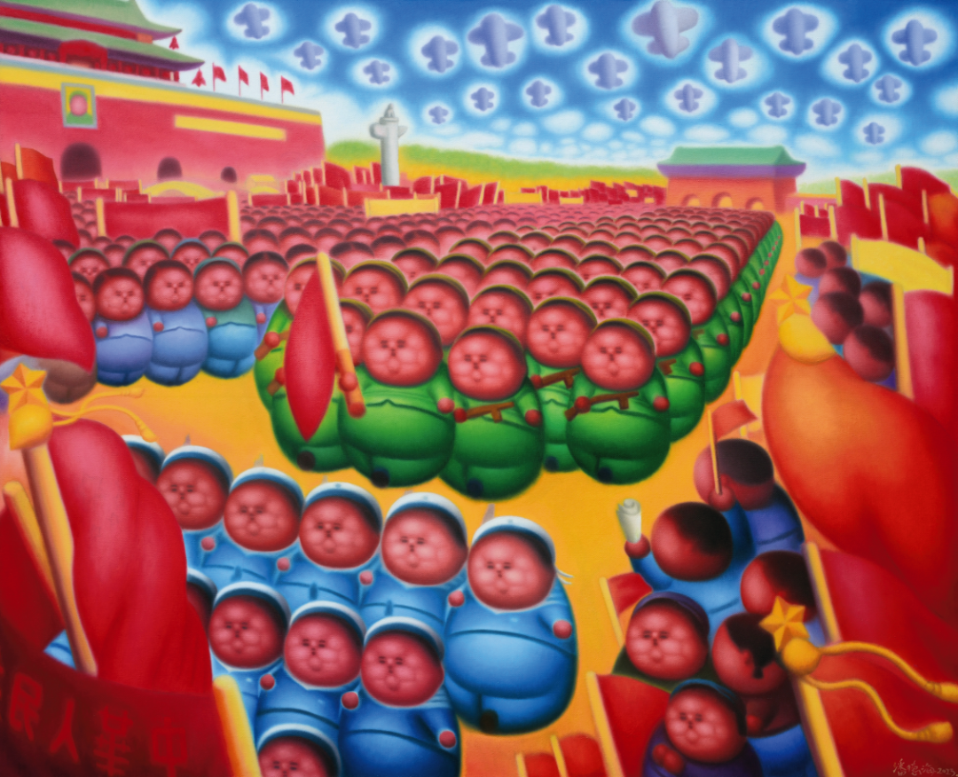 2007年重返北京后,潘德海开启了一系列色彩斑斓的描绘社会图景的创作,这些视觉张力极强的作品成为他新的经典图式。通过对历史符号的解构与重组,潘德海打破了传统历史叙事的权威性,以艺术家的独特视角重新诠释历史,使作品成为反映时代精神的镜子。色彩的大胆运用与形象的夸张变形,增强了作品的视觉冲击力与思想深度,引发观众对历史与现实的双重思考。