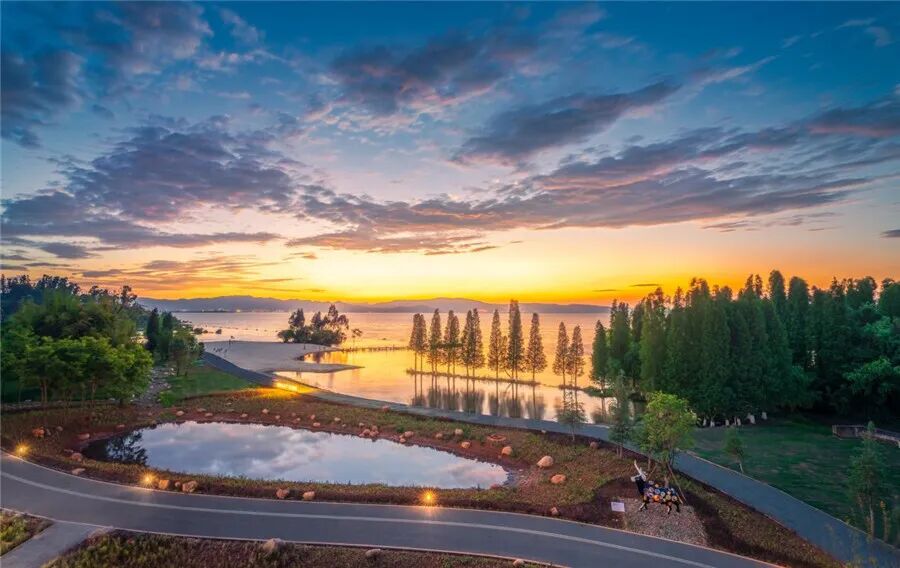 在昆明看日落是一场浪漫之旅,夕阳西下,晚霞染红天际,湖面披上金色的纱幔,温柔而瑰丽。