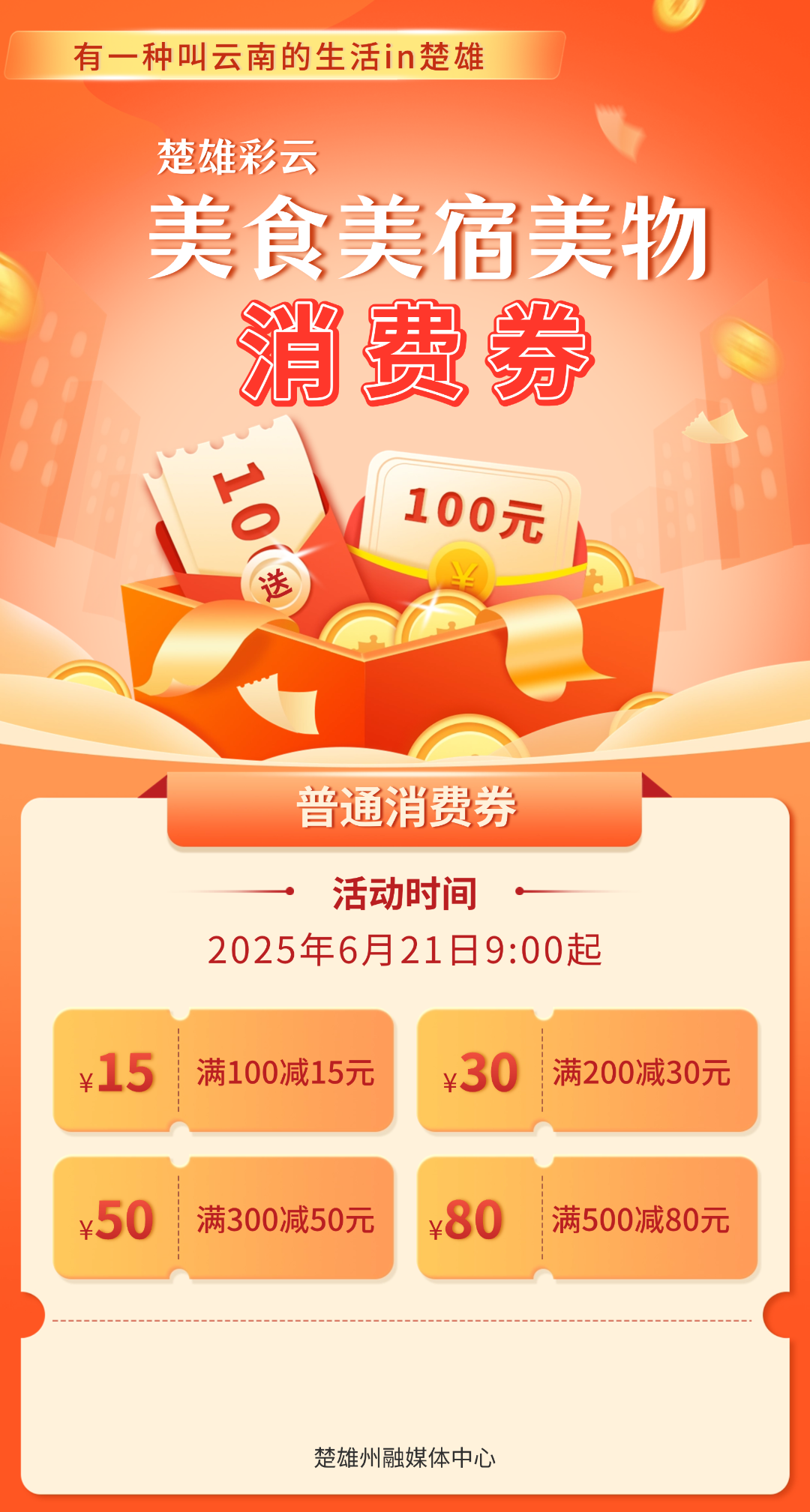 投放范围:楚雄州常住人口及在楚工作学习、观光旅游人员,当前地理位置定位为楚雄州即可申领消费券(以领券与核销定位信息进行认定)。