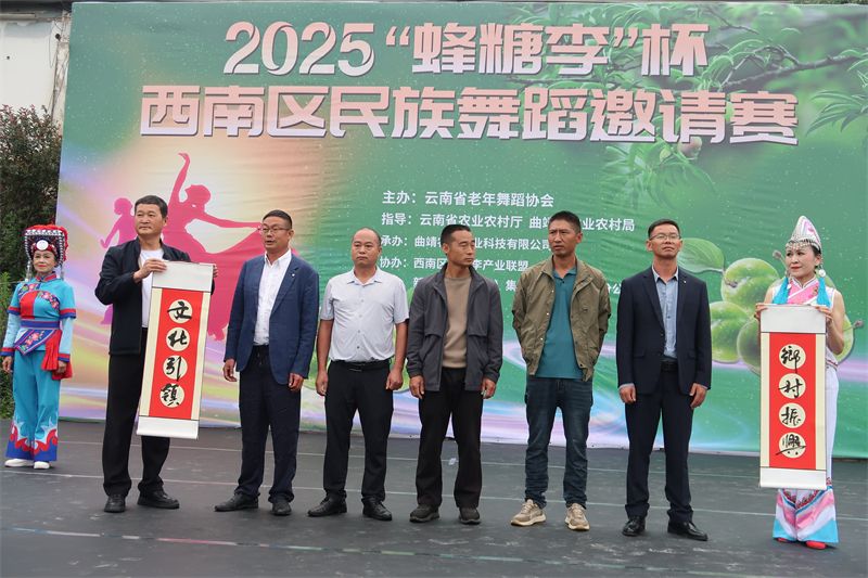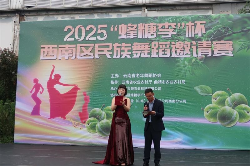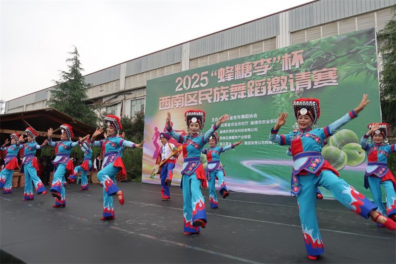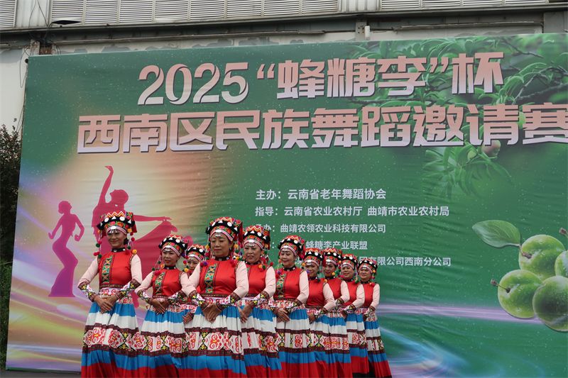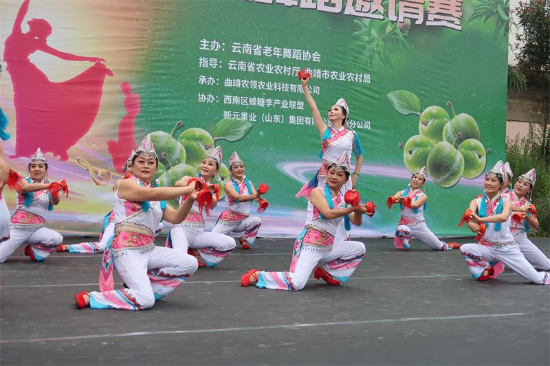 本次民族舞蹈邀请赛由云南省老年舞蹈协会主办,曲靖农领农业科技有限公司承办,西南区蜂糖李产业联盟、新元果业(山东)集团有限公司西南分公司协办,并得到云南省农业农村厅、曲靖市农业农村局的指导支持。活动现场,来自滇、黔、桂三省(区)的12支优秀老年舞蹈团队同台献艺,以绚丽多彩的民族舞蹈艺术赋能乡村产业振兴,展现新时代老年文化活力和精神风貌。