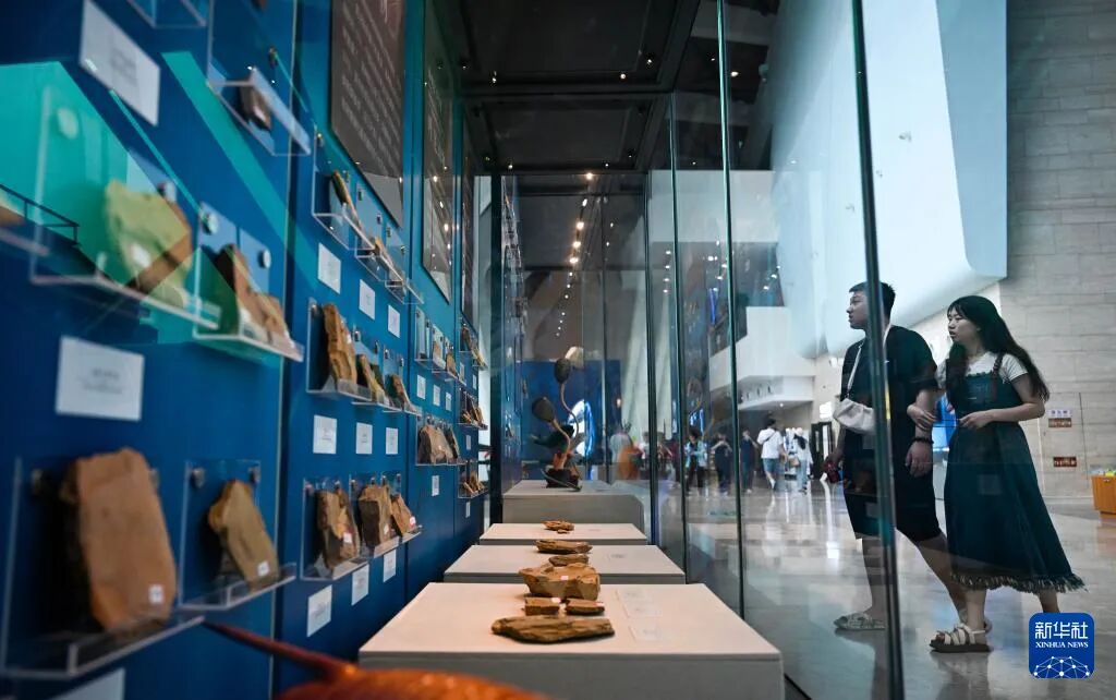 (观众在国家海洋博物馆参观“寒武纪的黎明——澄江生物群与生命多样性的起源”主题展。新华社记者 赵子硕 摄)
