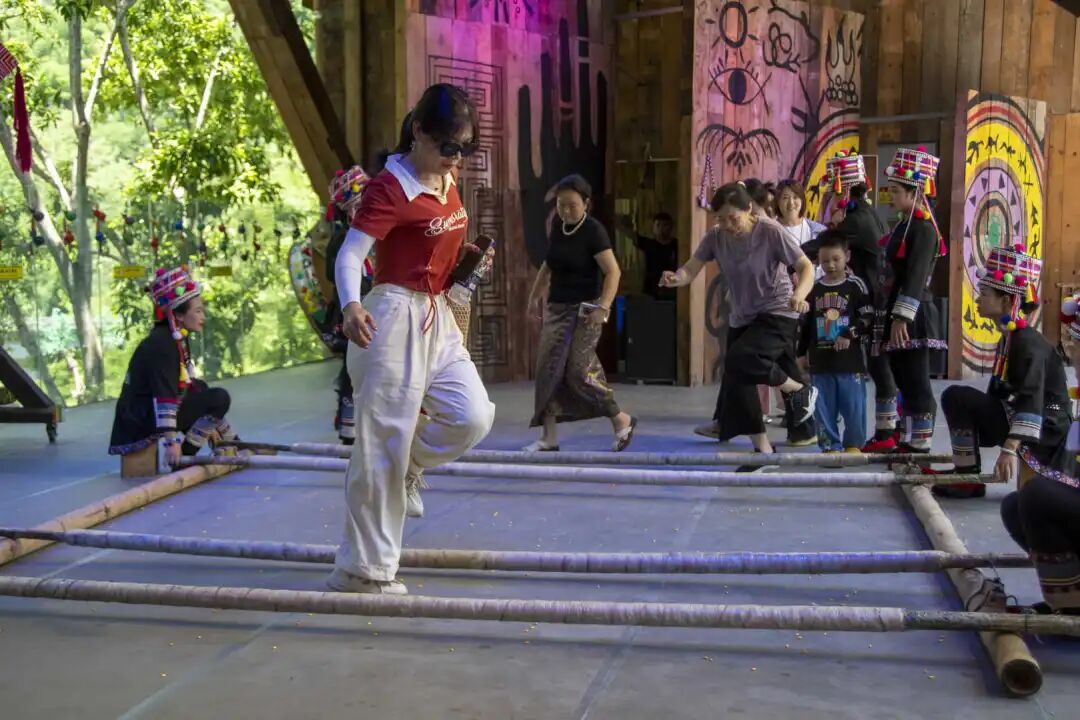 在生态保护之旅中,游客可前往野象谷追踪亚洲象足迹,在原始森林公园化身雨林守护者,到勐景来见证人与自然共生智慧,走进西双版纳热带花卉园,于热带作物微观世界和水果大观园中,开启生动植物课堂。想深入感受当地民族文化的游客,可走进勐景来的傣家竹楼中聆听悠扬象脚鼓,参与到热情的竹竿夹脚舞中,并体验慢轮制陶、傣纸制作、竹编等传统技艺。沉浸攸乐山千年古茶树的韵味,开启一场“乡村+民族文化”之旅。冬季,游客还能逃离寒潮,在北纬21°的暖阳里赶“摆”,品尝香茅草烤鱼,开启惬意暖冬之旅。