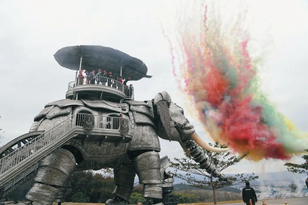 同时,西双版纳勐泐文化旅游区结合当地人文特色打造推出的“白+黑”新玩法,让游客不再是旁观者,更是故事的参与者。景区从山脚到山顶分段打造全长300米的“天梯”,满足了游客“无痛式”爬山观光需求。山顶明镜台360°观景台可远眺澜沧江,俯瞰西双版纳全景,是景区最佳观景地。今年,景区借助AI智能技术推出新IP机甲大象“巴力”,其巡游表演与趣味互动深受游客喜爱。