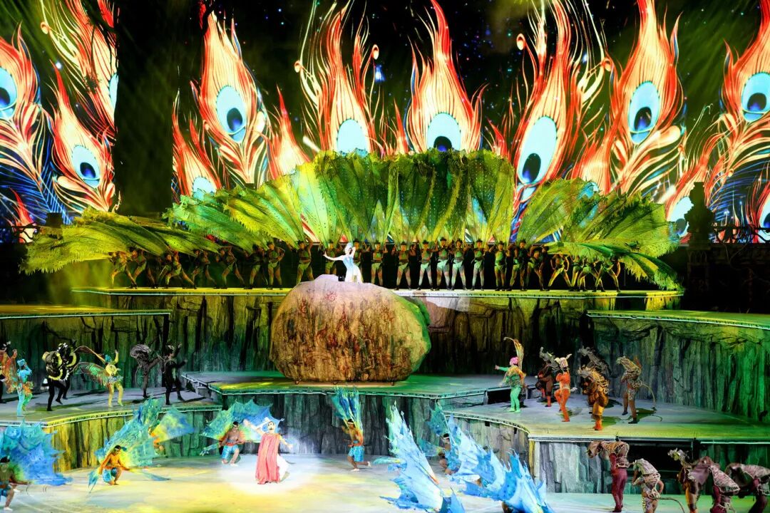 此外,沉浸式魔幻剧目《象之心》运用裸眼3D、现代光影、特效等技术,讲述亚洲象北上南归故事,将观众带入神秘的大象世界,感受人与自然和谐共生。夜间推出的实景演艺项目《夜版纳之傣魅》融合科技与艺术,为观众呈现了一场跨越千年的傣族文化传奇,热情的篝火晚会,也为游客带来震撼视听体验。