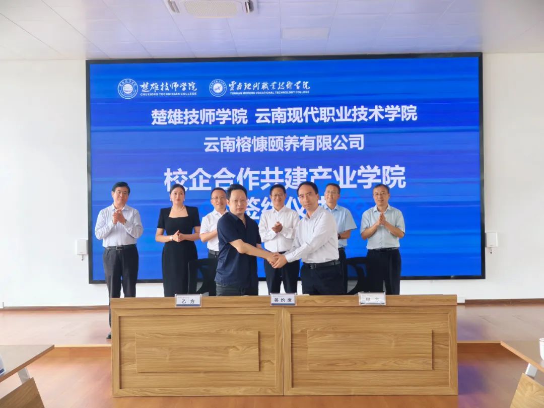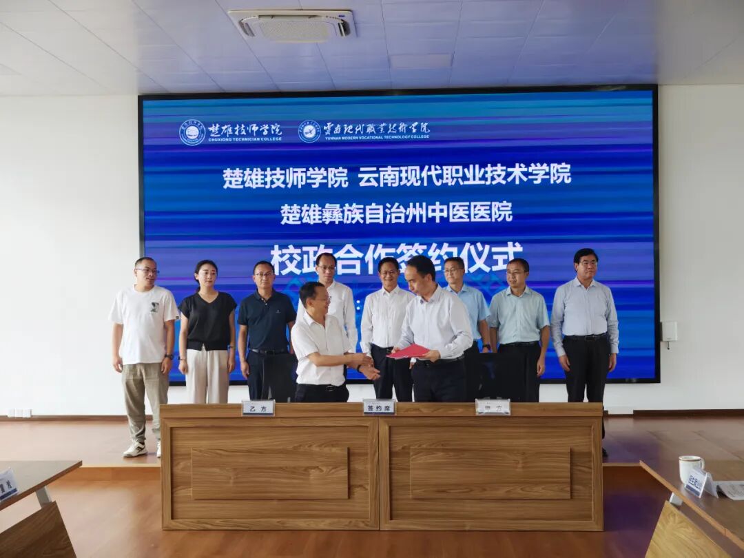 7月3日,楚雄技师学院、云南现代职业技术学院与楚雄州中医医院(云南省彝医医院)、云南榕慷颐养有限公司、大梁造物(昆明)教育科技有限公司、飞虎驼峰实业(集团)有限公司隆重举行校政企合作集中签约仪式。本次签约旨在开启实质性、长期性、互利共赢的合作,共同服务区域经济社会发展与高素质技能人才培养。