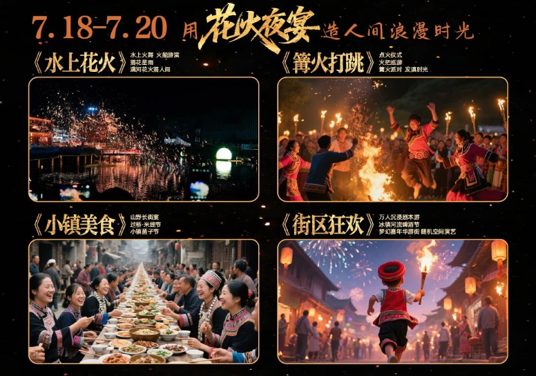 水上花火:独一无二的水上火舞、火船游演,感受满河花火落人间的梦幻。