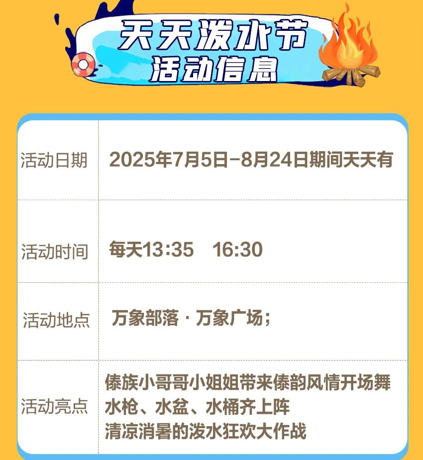 天天泼水节:傣韵风情开场舞+水枪、水桶、水盆齐上阵。
