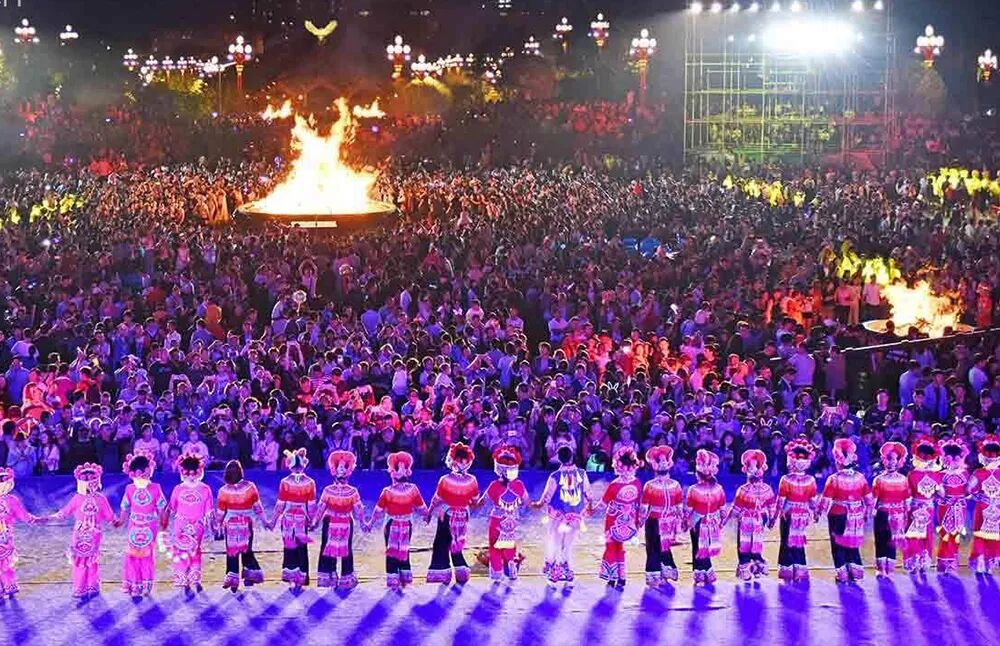 “纵情踏歌”撒火把 “蹦彝迪”万人左脚舞狂欢
