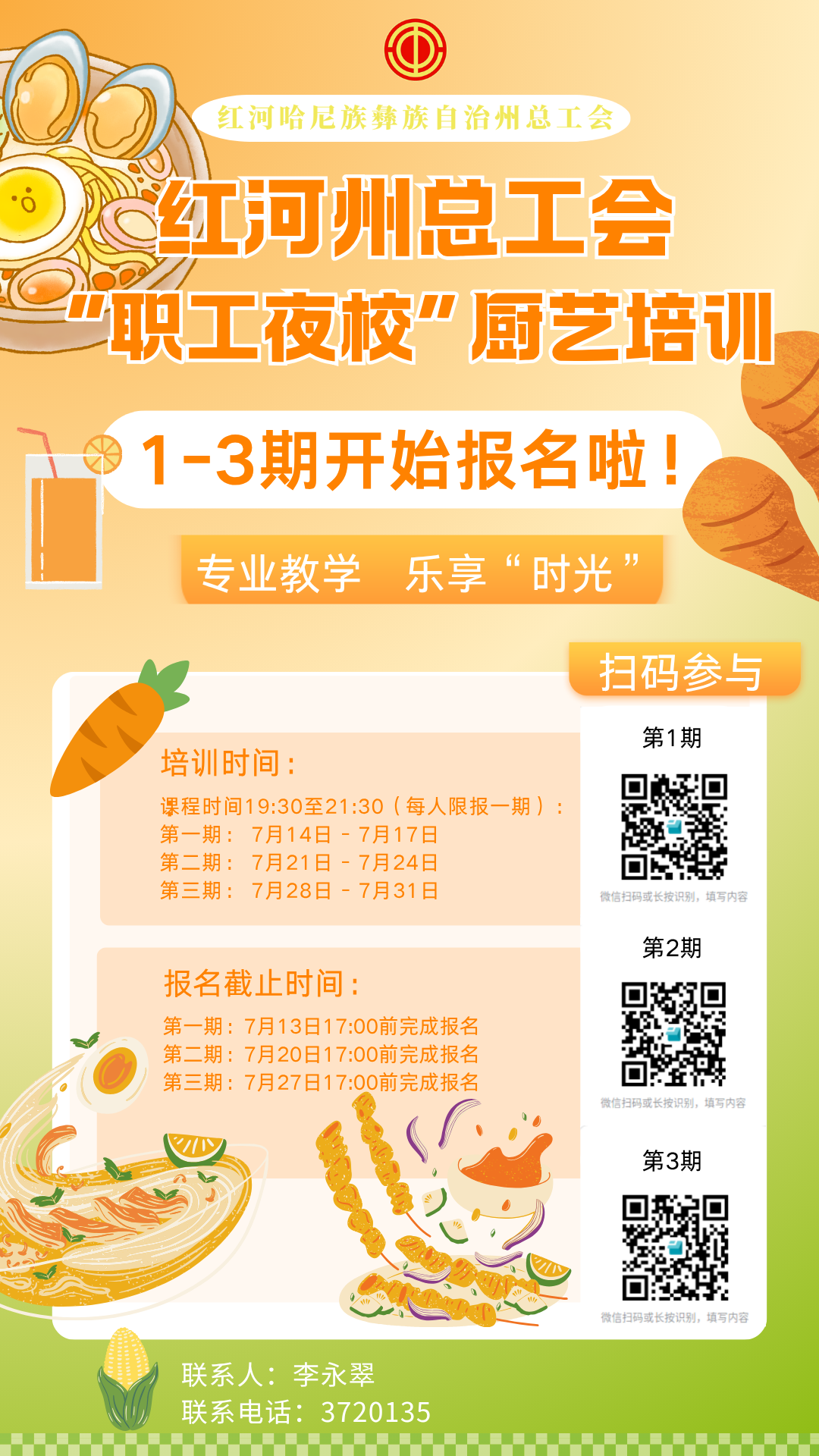 为丰富职工业余生活,提升生活品质和幸福感,红河州总工会精心策划推出2025年“惠生活”普惠服务重点项目——“职工夜校”厨艺培训。本次培训面向全州工会会员,名额有限,快来报名吧!