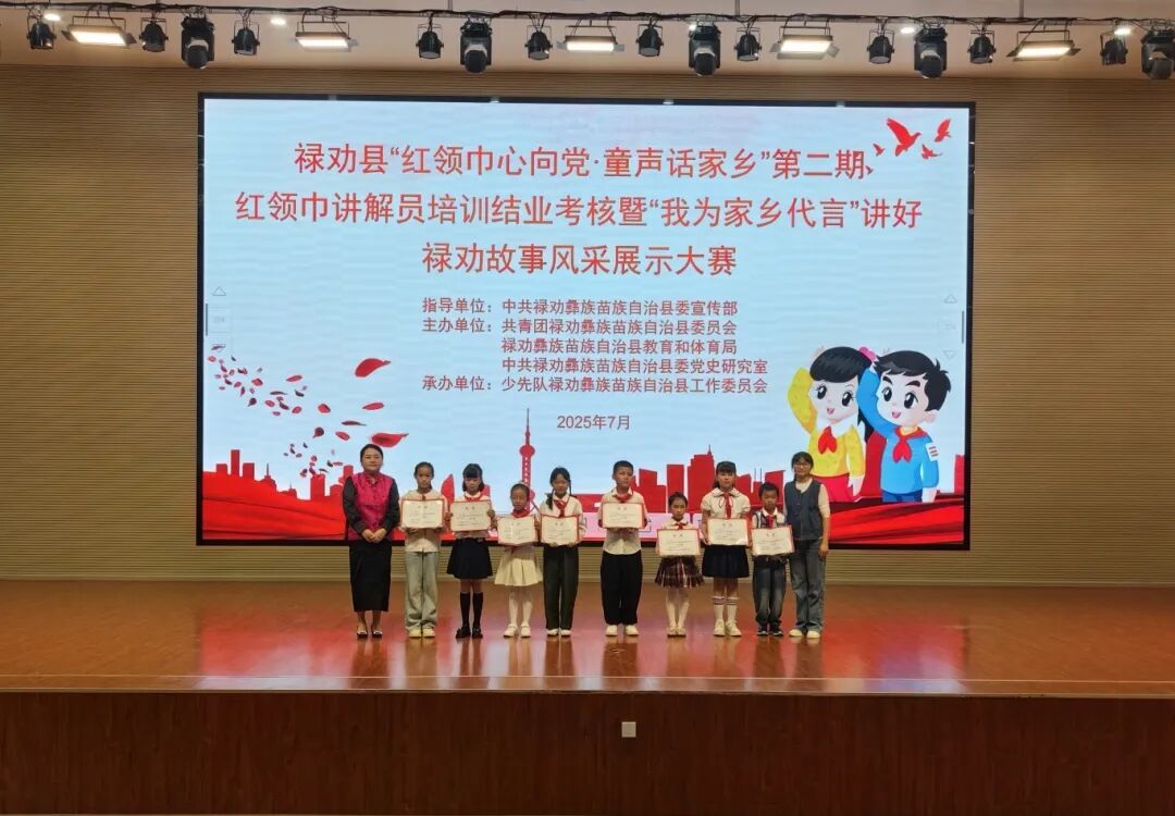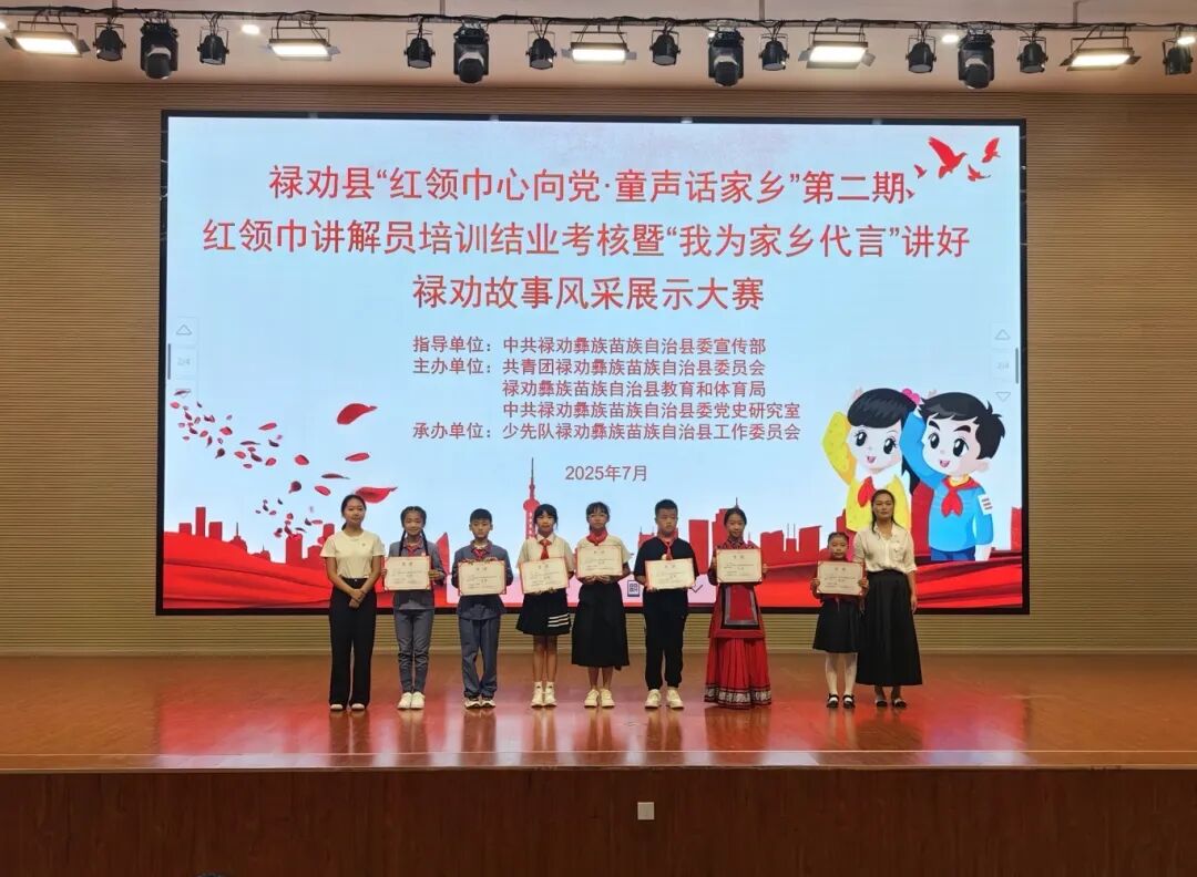 7月11日,一场别开生面的“红领巾心向党·童声话家乡”风采展示活动精彩上演!来自禄劝县城各中小学的50名红领巾讲解员齐聚一堂,以结业考核的形式,用真挚童声讲述家乡故事,为禄劝代言。