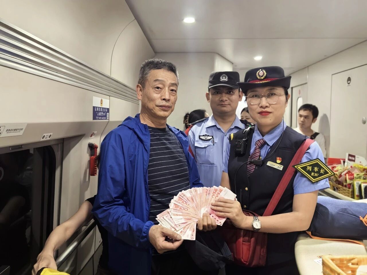 赵先生几乎是飞奔着冲到餐吧车。此时,拿着挂包的列车长正在等候——原来,列车长在巡视车厢检查厕所卫生时发现了挂在卫生间的挂包,并第一时间通过广播寻找失主。核对身份证信息、清点现金数额,一万元分文不少。