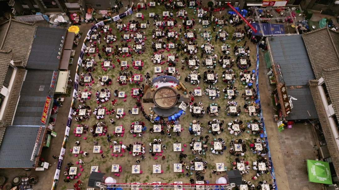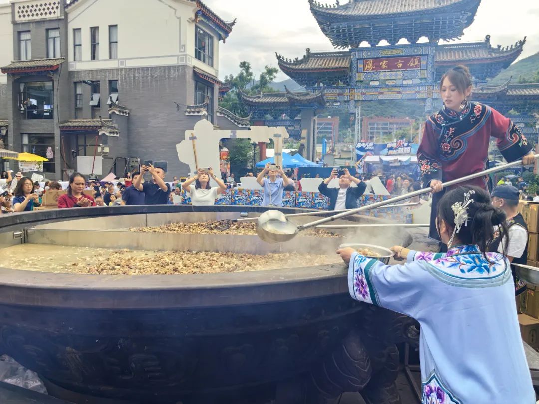 火把节期间,禄劝凤家古镇羊肉飘香,歌声悠扬。千人汤锅宴火热启幕,八方游客齐聚土司府前,围坐方桌,共品羊肉汤锅、共赏歌舞表演、共享民族团结,共话美好未来。