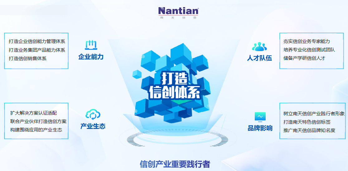核心技术方面,南天信息作为金融行业自主可控的先行者,凭借深厚的技术积累,自主研发了核心业务系统、便民缴费平台、云智维中台、智能风控系统、智能营销系统、全栈信创云平台、统一支付平台等解决方案,成功落地多个行业标杆项目。还参与了多家国有商业银行、大型股份制商业银行、城商行、农信行、农商行等信创改造项目,推动了银行业务系统的智能化升级,实现了从单点替代到全栈赋能、从技术适配到生态引领的信创能力快速发展。