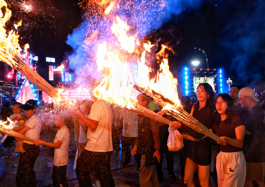 来自深圳的汪家凯是第二次携爱人一起来楚雄过火把节:“我们2023年来过一次,当时给我们留下的印象非常好,所以今年我们又来了。祭火大典上毕摩带领大家点火的仪式给我留下了深刻印象,这是千年历史的传承,我们彝族的文化传承得非常好。”