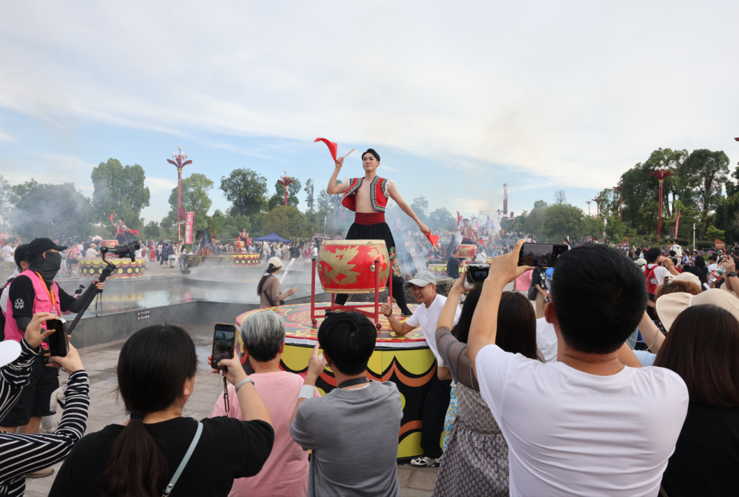 来自北京的游客袁榕今年约着朋友专程赶来参加楚雄的火把节,来到现场,他们顿时被沉浸式演出所感染:“我第一次来楚雄参加火把节,感觉非常热闹,民族文化氛围很浓,自己也非常激动,非常高兴!”随着演出推进,“火的鼓韵”“火的盛装”“火的起源”等环节轮番上演,铿锵的鼓点、绚丽的彝族服饰、古朴神秘的舞蹈,将民族风情展现得淋漓尽致。