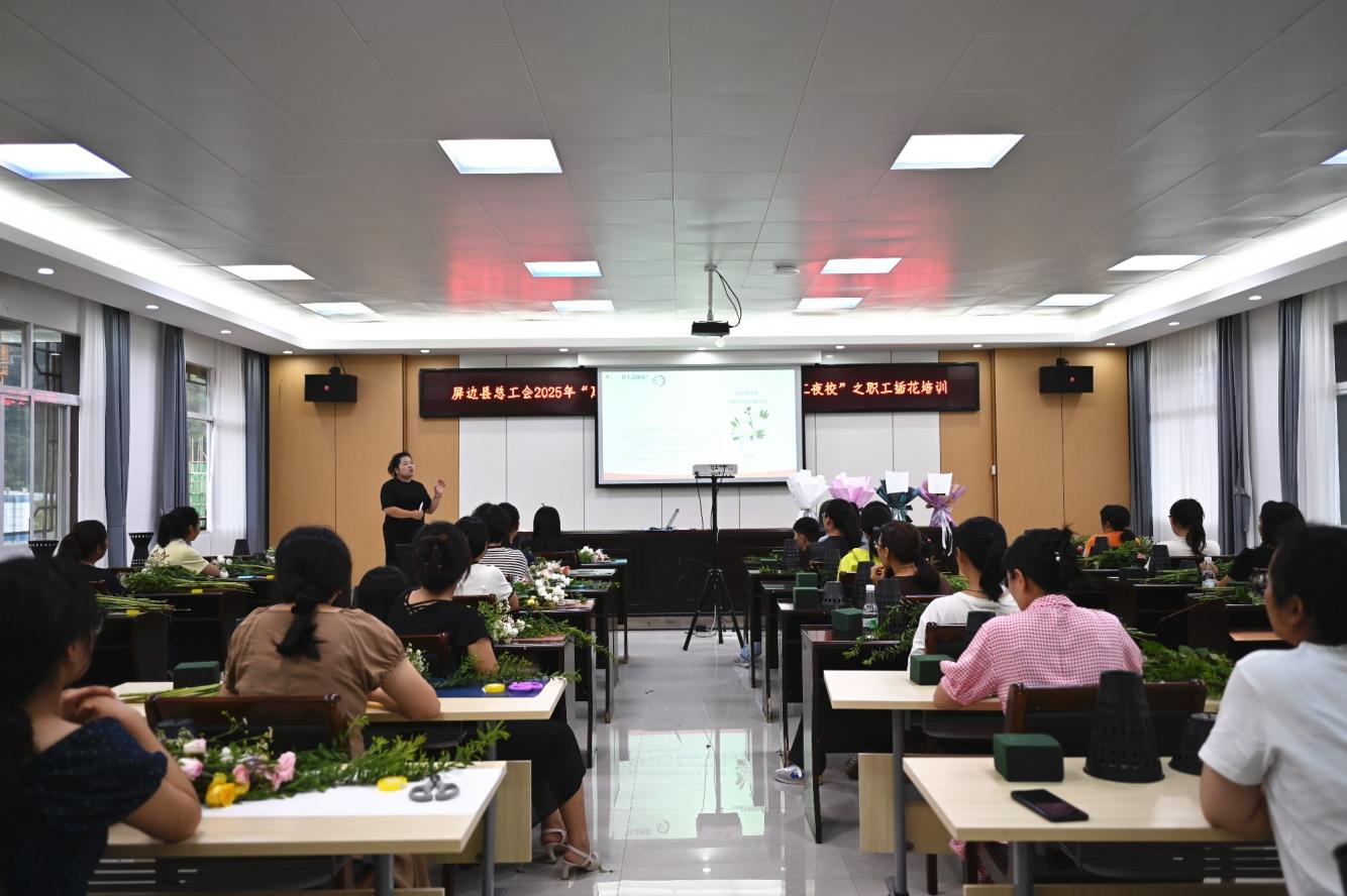 7月16日晚,屏边县总工会培训室内花香四溢,一场主题为“艺韵插花绽放职工风采”的插花培训在此温馨上演。30名来自全县各企事业单位的职工齐聚一堂,在花叶交错间感受艺术魅力,这场别开生面的活动为夏日的屏边增添了一抹灵动的色彩。
