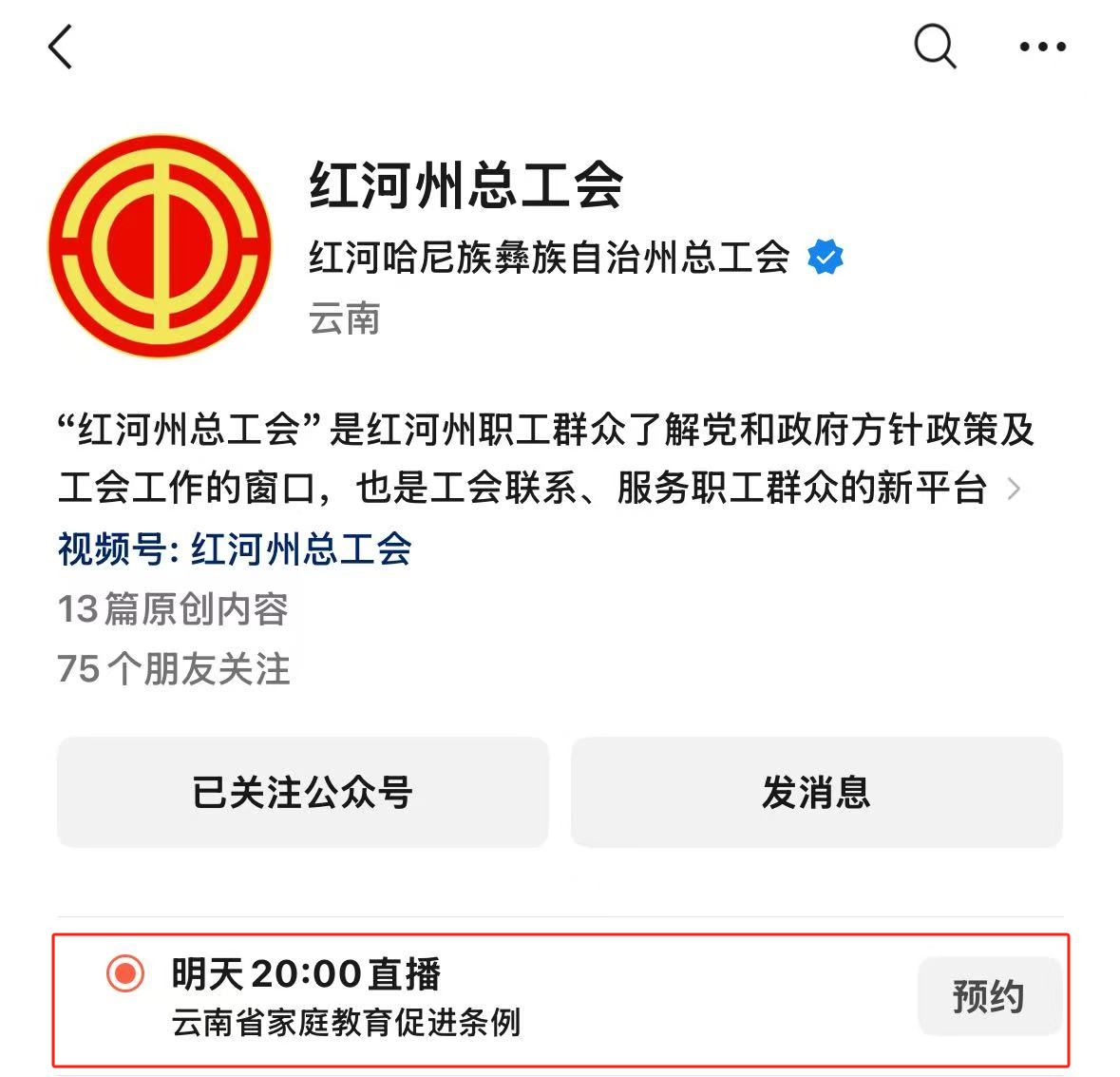 方法二:打开红河州总工会微信公众号主页,即可预约直播。